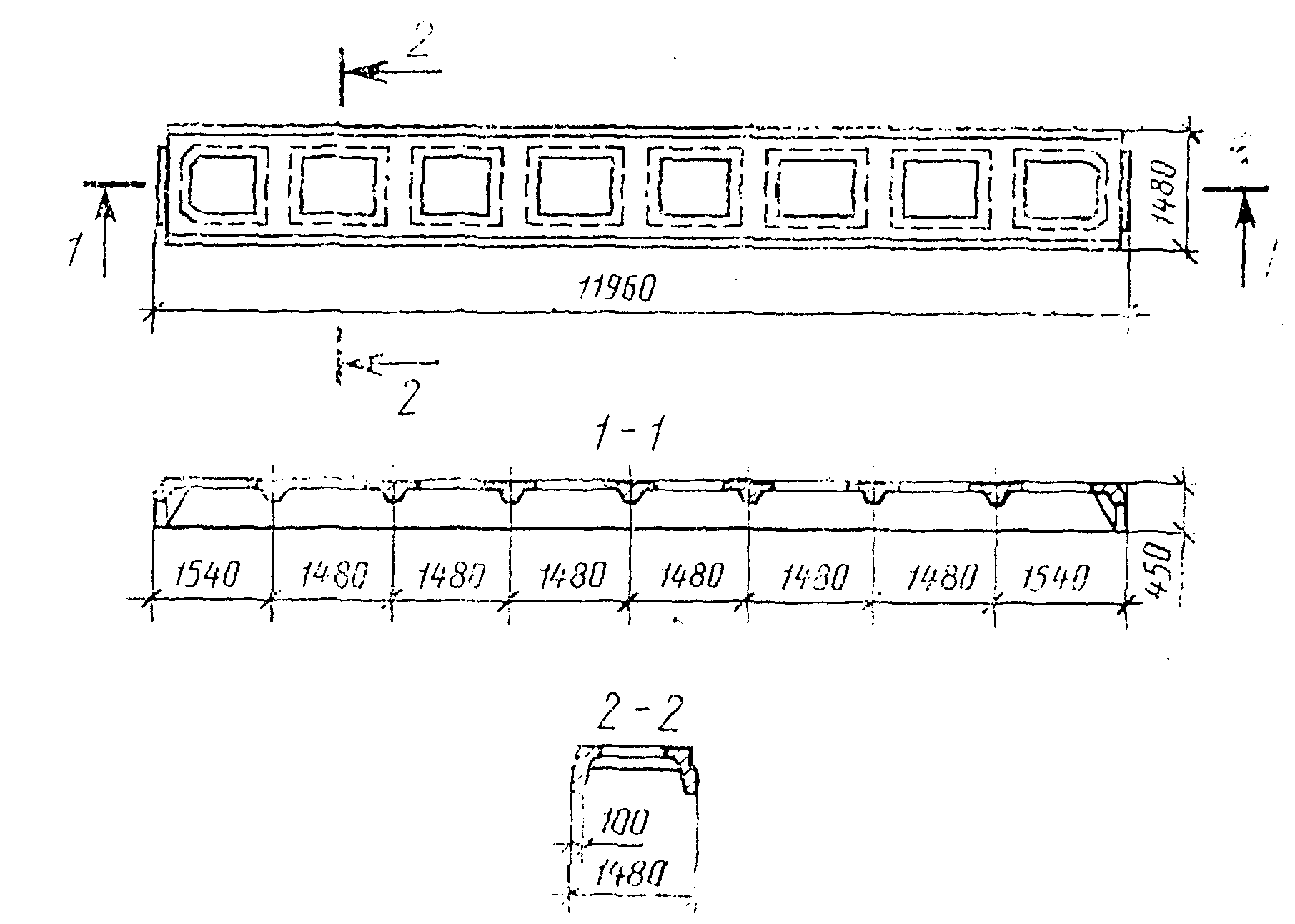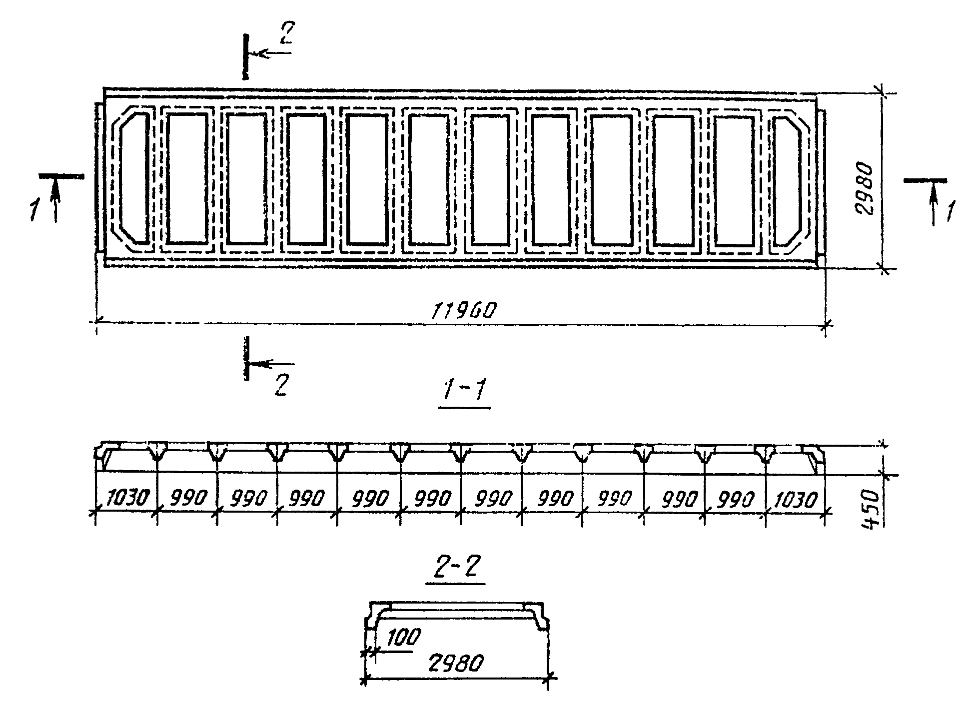 1.2.1. Железобетонные ребристые плиты координационными размерами 1,5 х 6, 1,5 х 12, 3 х 6, 3 х 12 и 3 х 18 м изготовляют предварительно напряженными, а доборные ребристые и плоские - с ненапрягаемой арматурой.