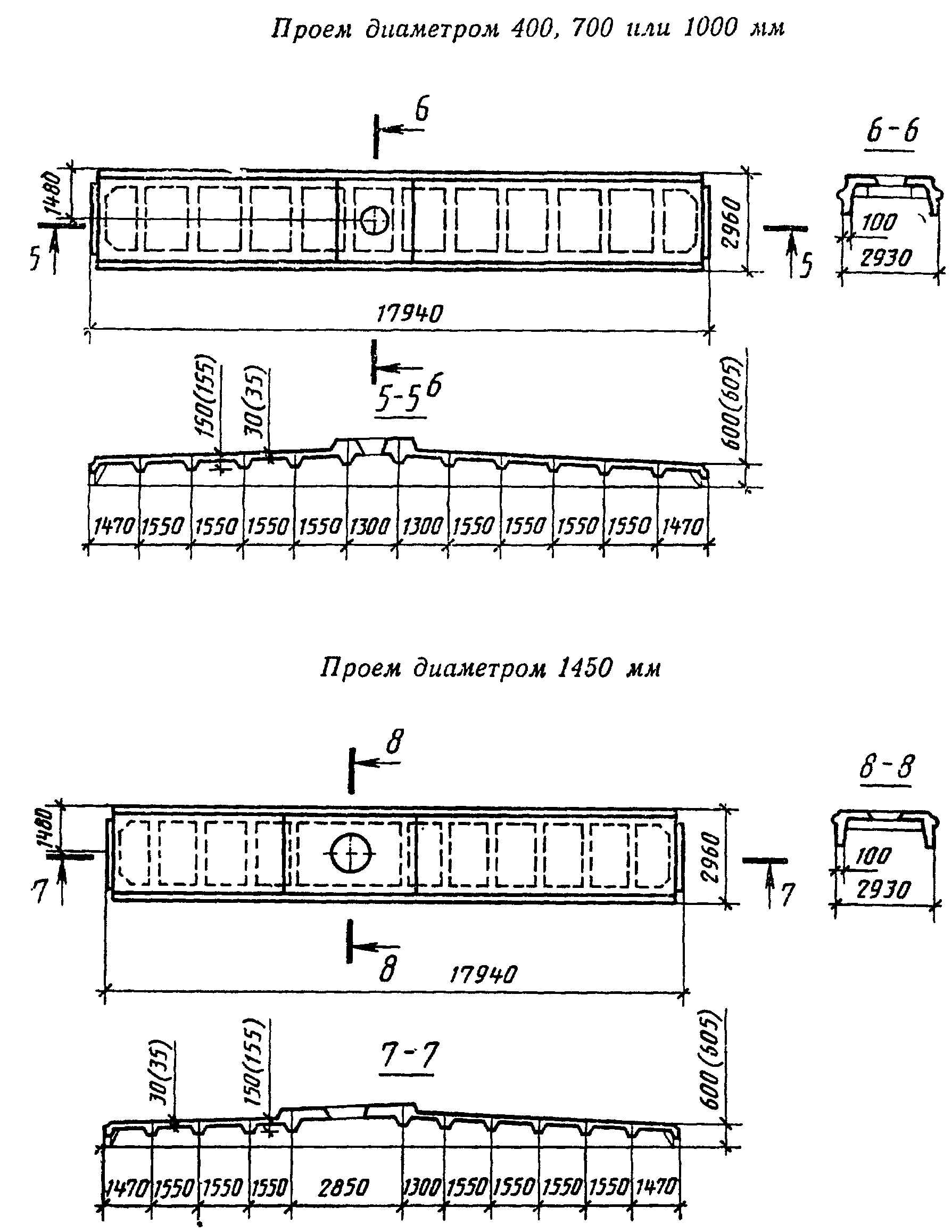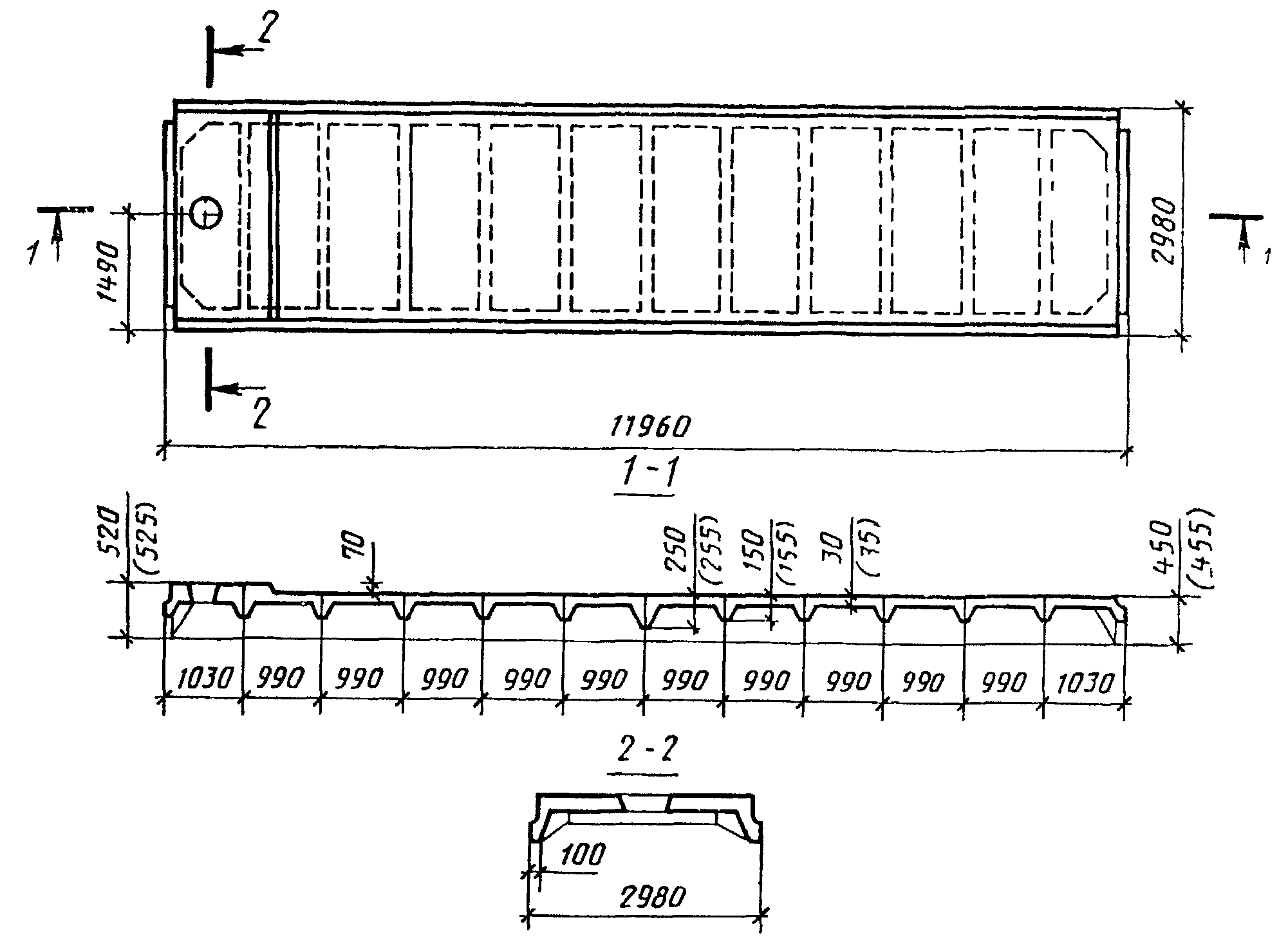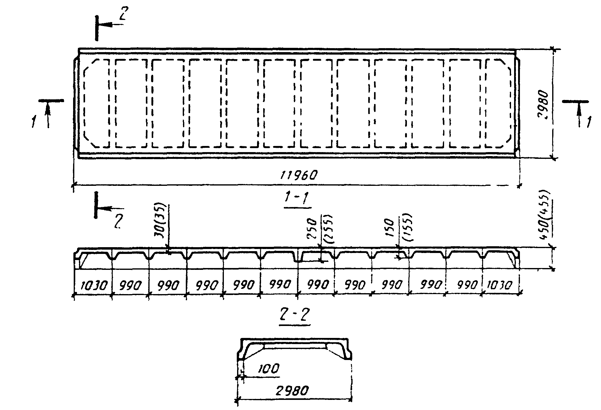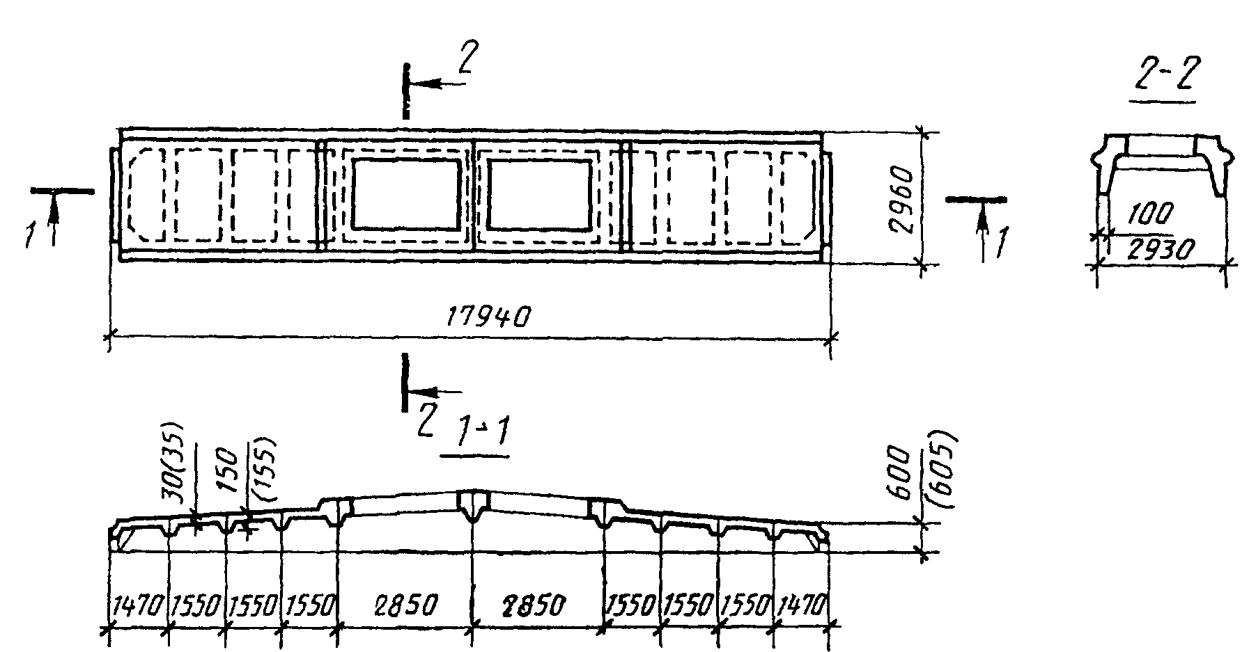 30 в скобках приведен второй вариант размеров плит в связи с увеличением толщины их полки на 5 мм в случаях, указанных в рабочих чертежах на эти плиты.