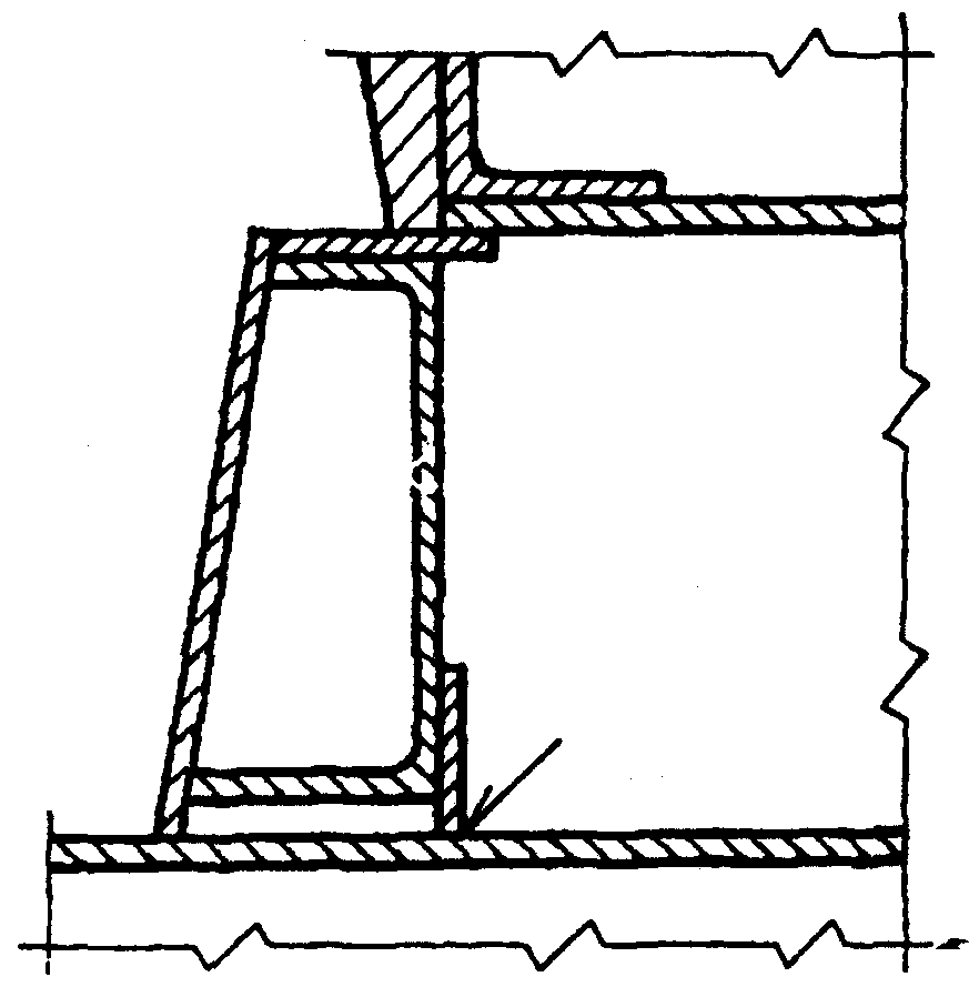 4. Проемообразователи и вкладыши изготовляют сварными из стального листа. Для повышения жесткости проемообразователей и вкладышей следует изготовлять их с каркасом из фасонного металлопроката или гнутого профиля. Формовочные поверхности проемообразователей изготовляют из листа толщиной не менее 8 мм, а вкладышей - из листа толщиной не менее 6 мм.