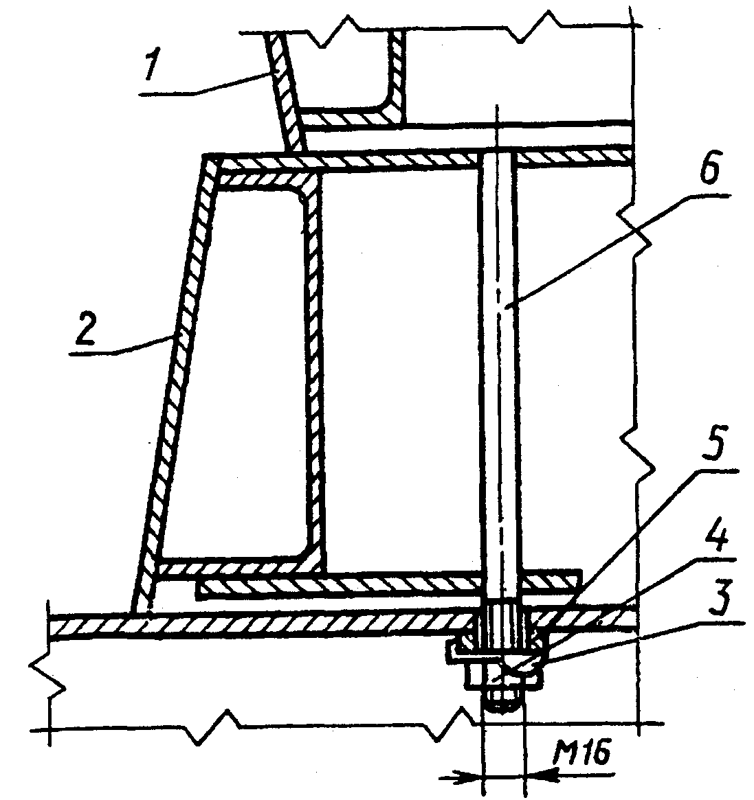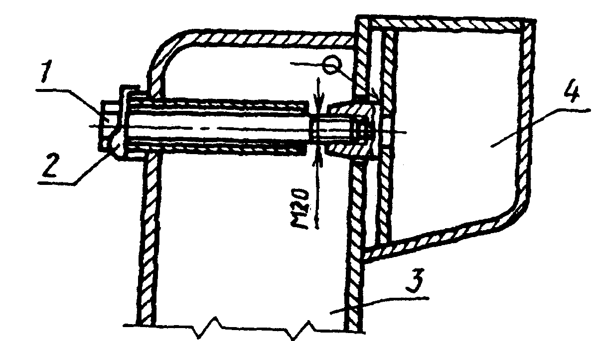 1 - шпилька; 2 - гайка; 3 - отгибная шайба; 4 - борт;