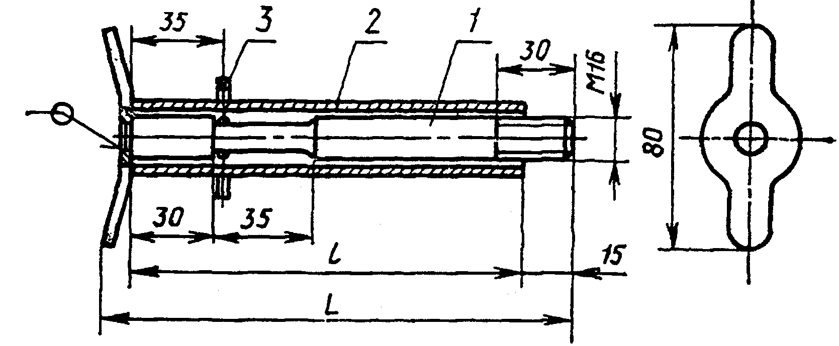 1 - шпилька; 2 - направляющая; 3 - платик; 4 - гайка;