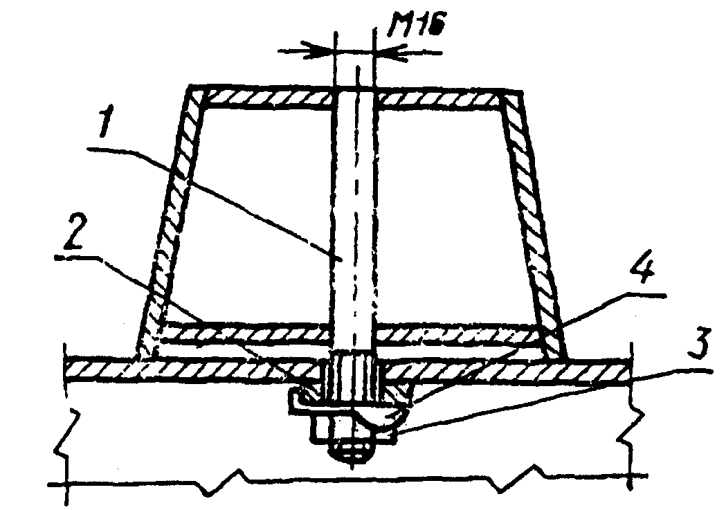 1 - шпилька; 2 - платик; 3 - гайка; 4 - отгибная шайба