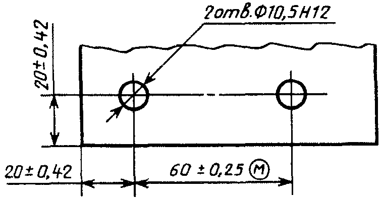 Если допуски расположения осей зависимые, то после предельных отклонений размеров, координирующих оси, следует указывать знак зависимого допуска
