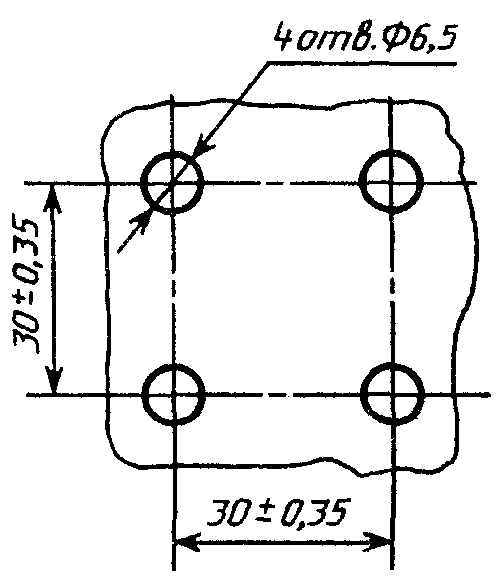 двух любых отв. +/- 0,35 мм.