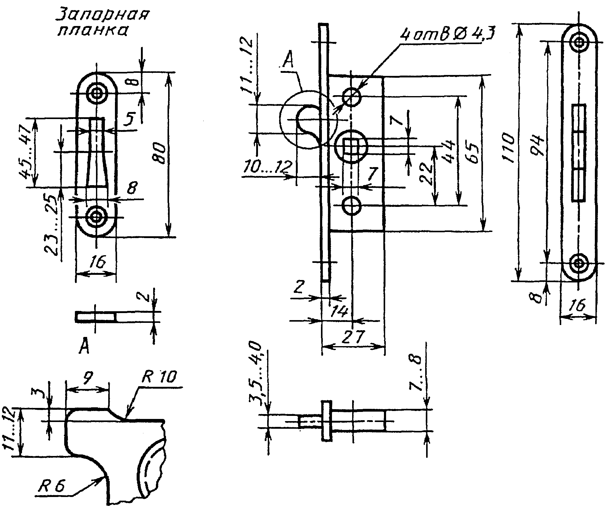 Примечание. Форма и размеры засова могут быть аналогичными засову заверток типов ЗР2, ЗР3.