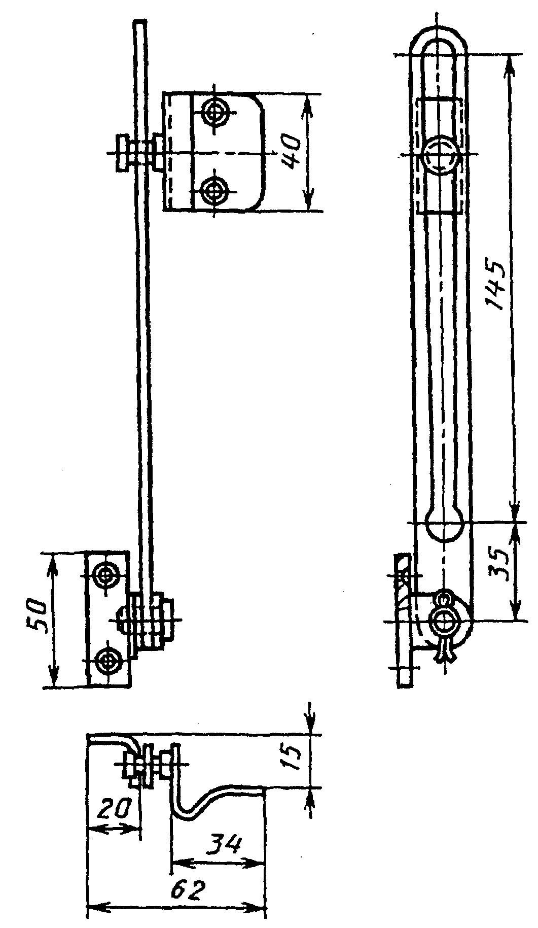 - фрамужные приборы типа ПФ2, устанавливаемые на фрамуги с тройным остеклением, - двумя ограничителями и двумя соединителями (черт.