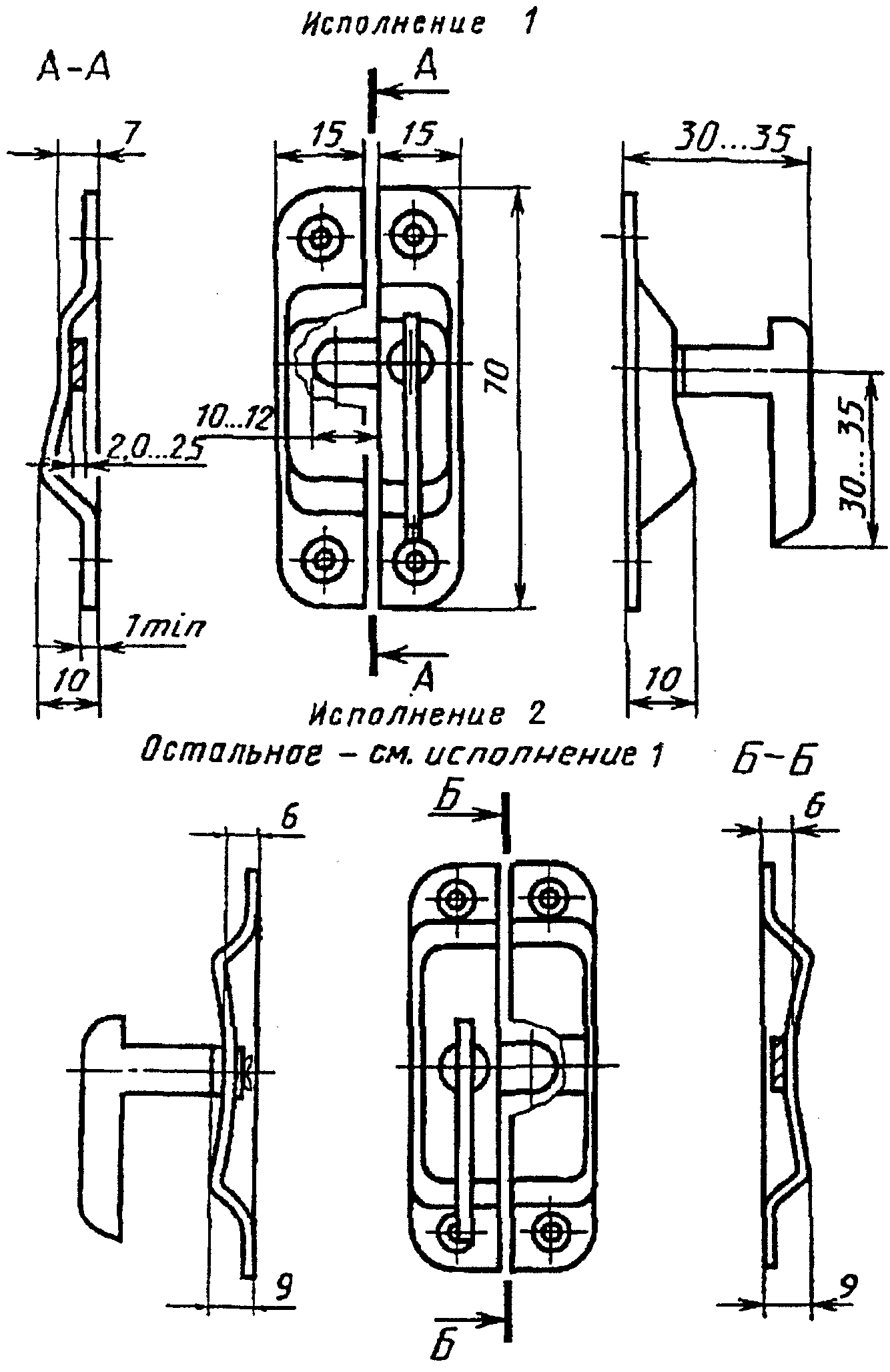 7. Размеры засова и запорной планки шпингалетов типов ШН1, ШН2 и задвижки типа ЗТ должны обеспечивать при их соединении натяг не менее 3 мм. Толщина запорных планок указанных изделий не должна быть менее 1 мм.