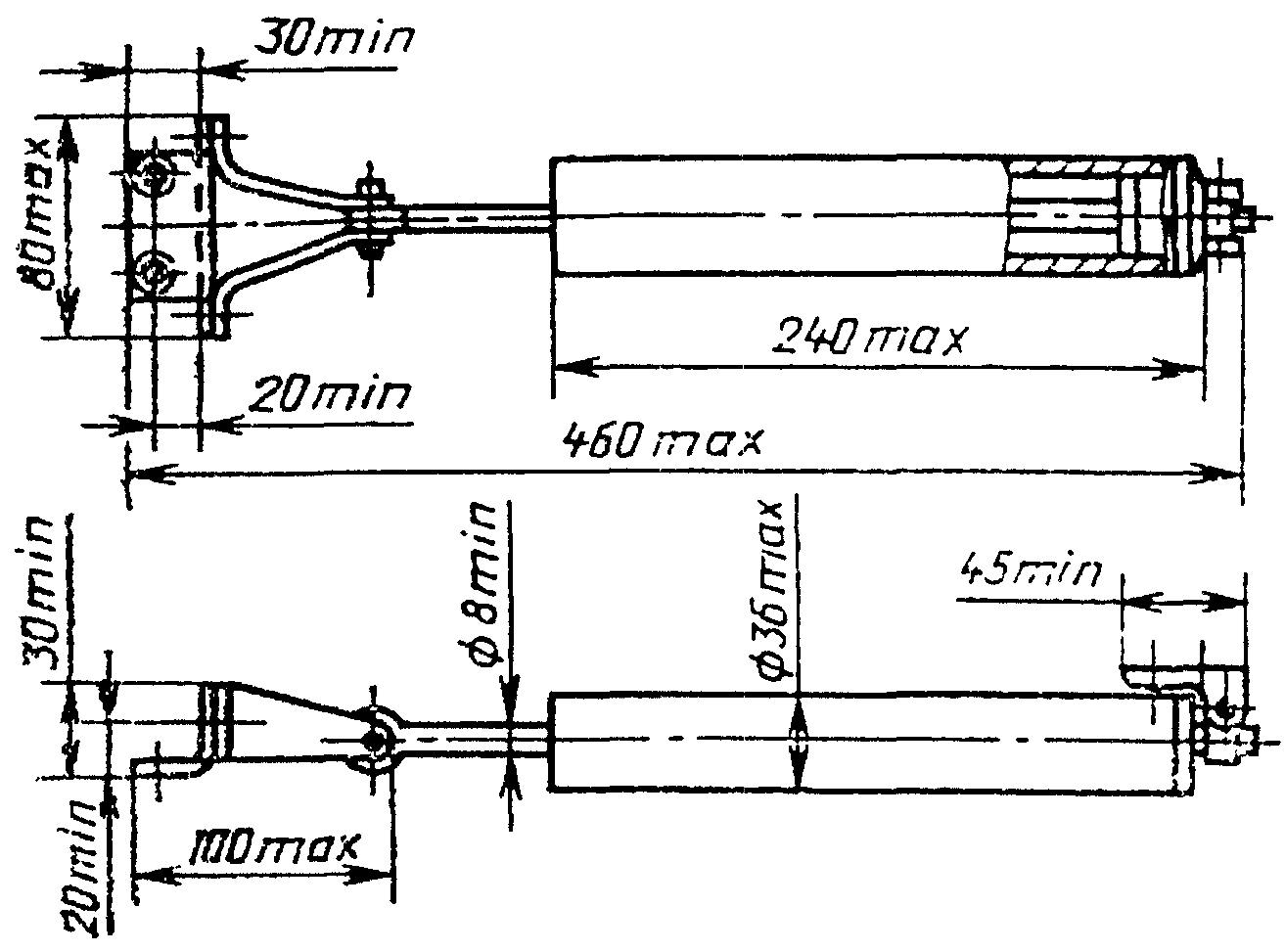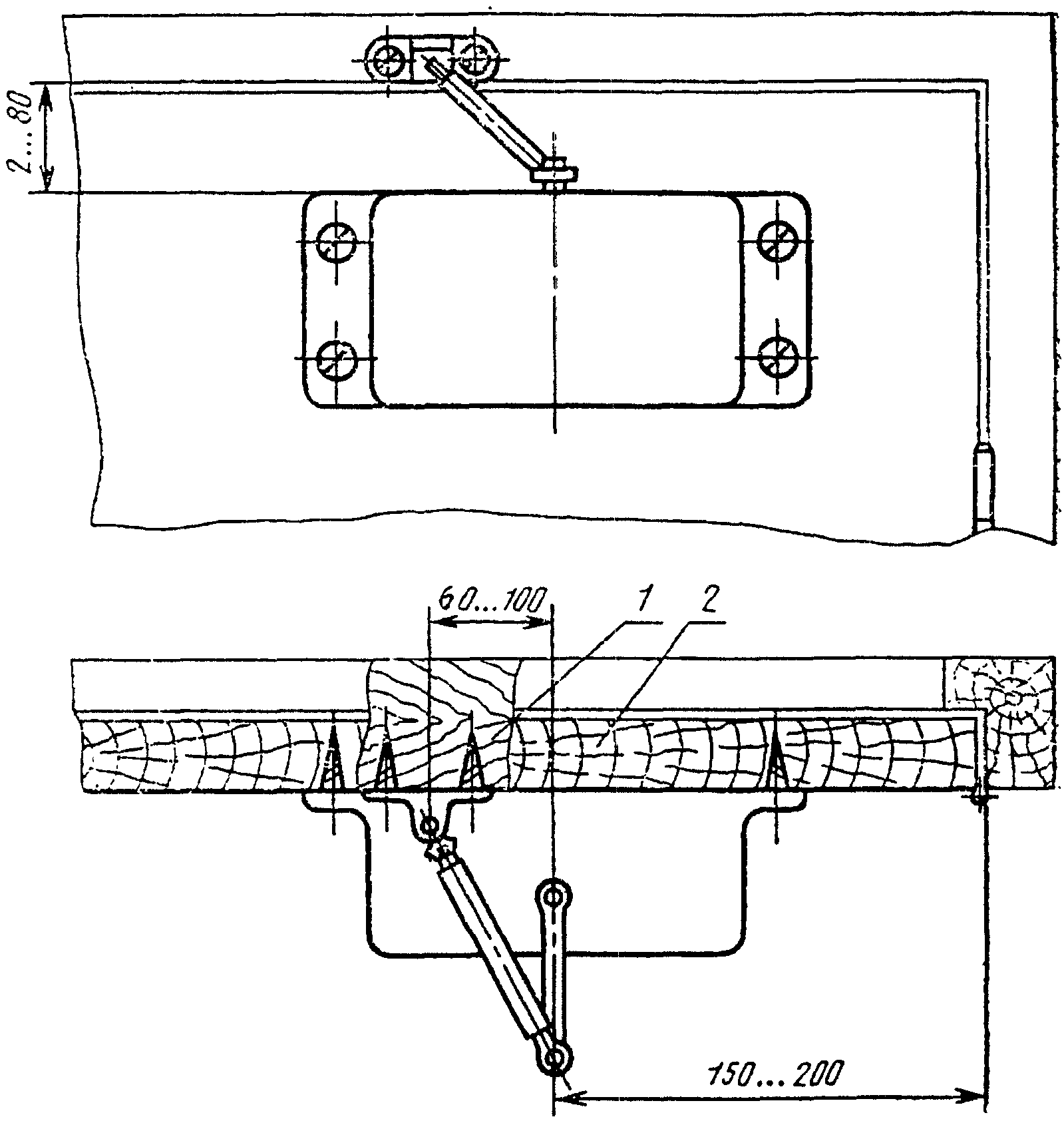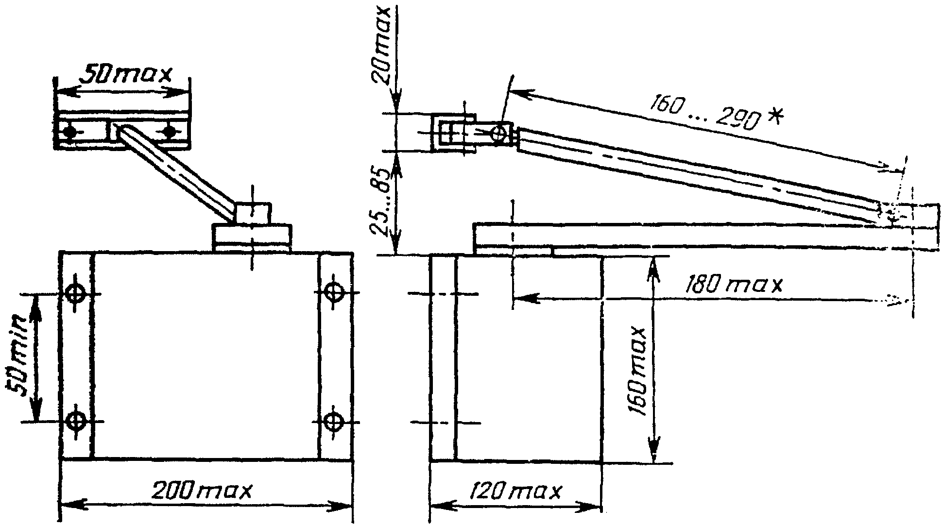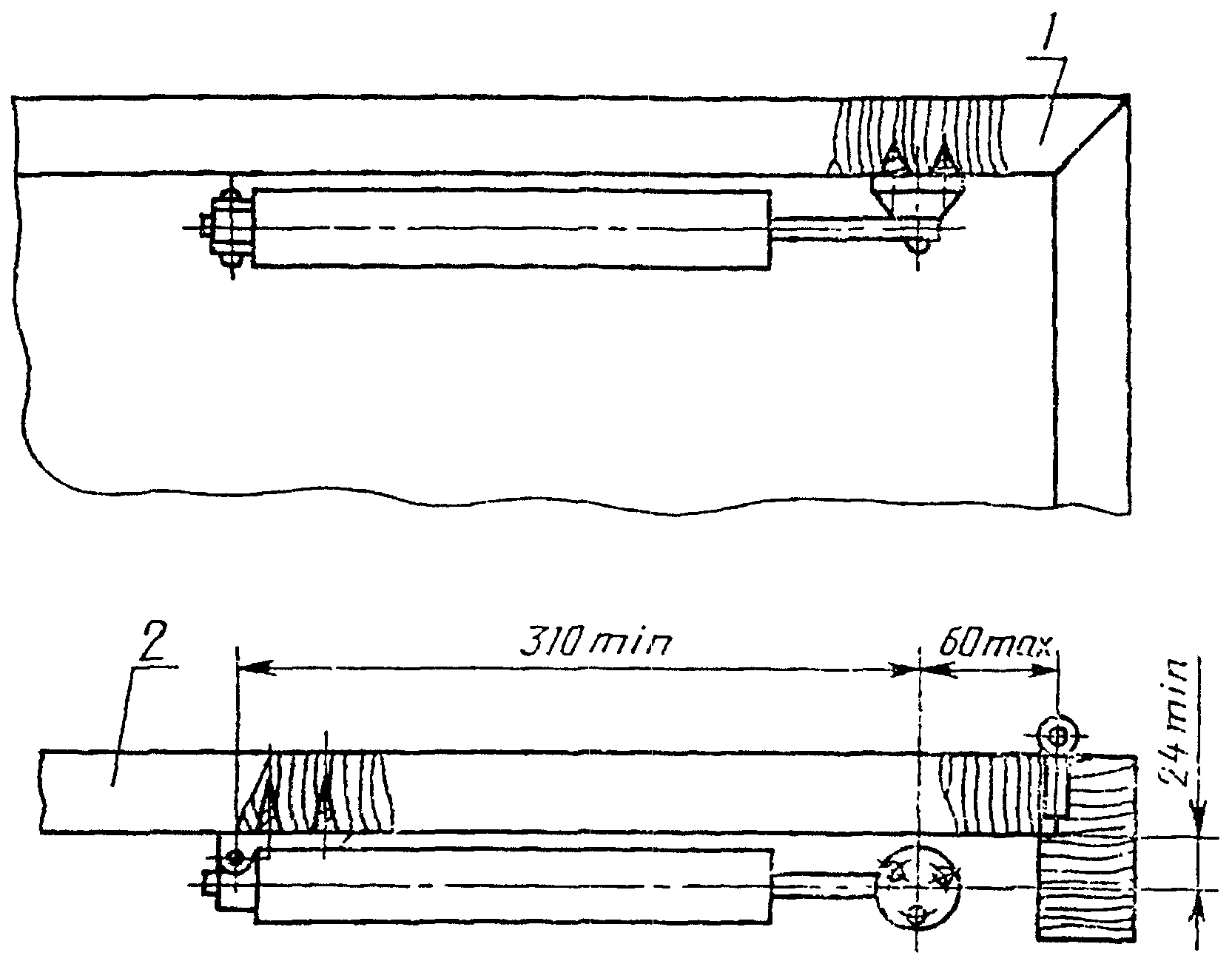 4. Конструкция дверных закрывателей типа ЗД1 должна обеспечивать плотное прилегание дверного полотна к коробке и регулирование угла раскрытия двери, а также возможность разъединения рычагов для полного раскрытия двери и регулирование продолжительности закрывания двери от 2 до 6 с.