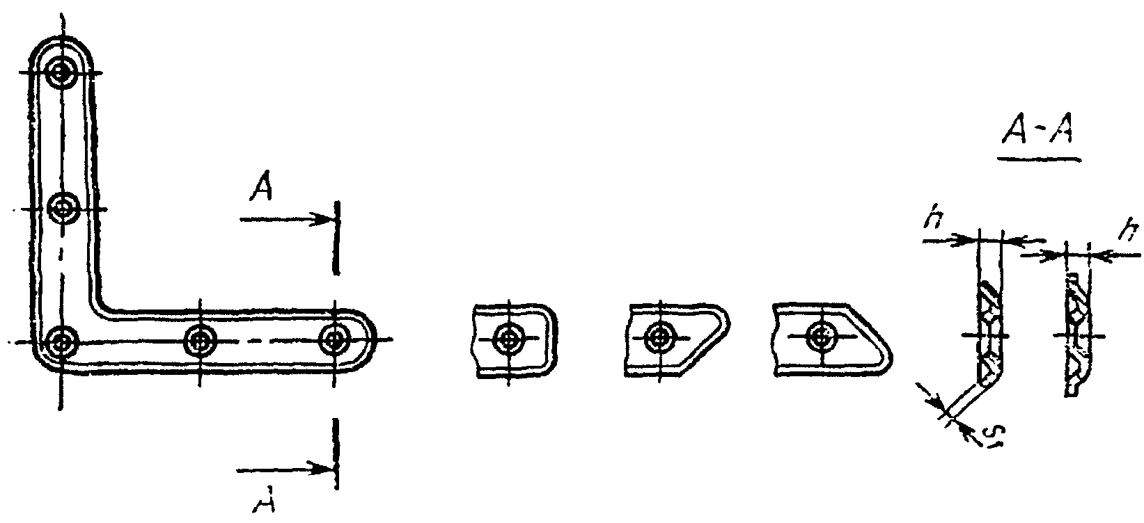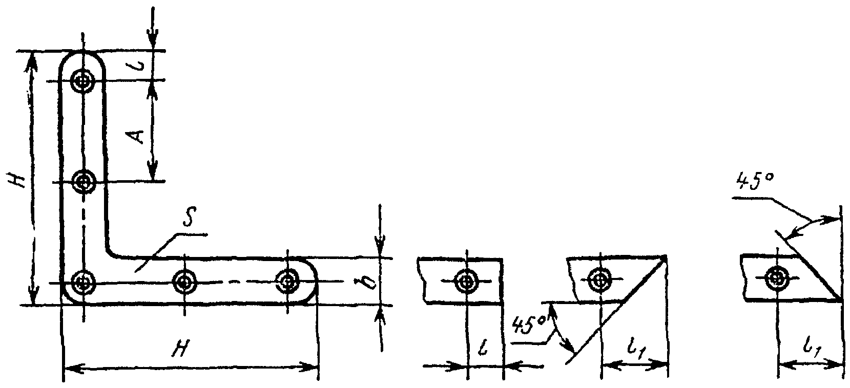 Примечание. Угольники типов УГ75, УГ100 и УГ125 допускается изготовлять с четырьмя отверстиями.