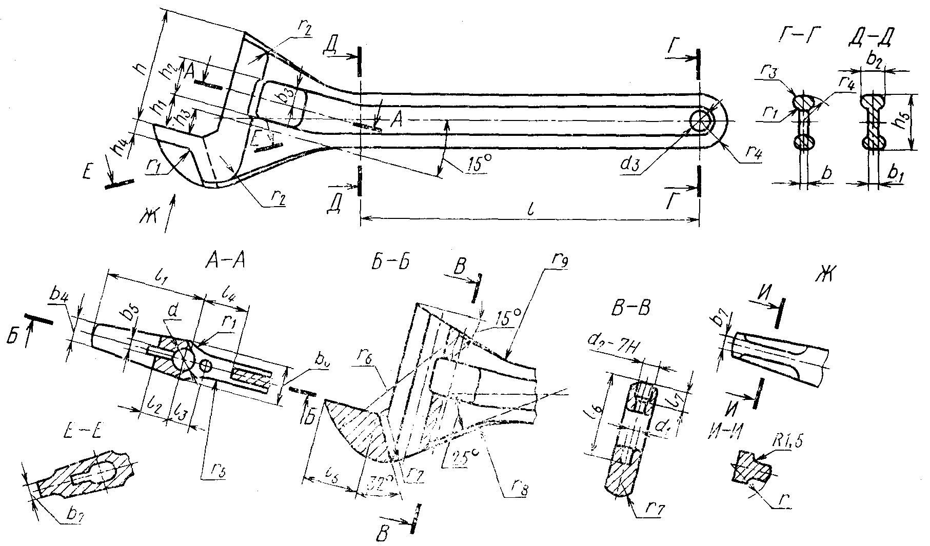 1.1. Основные размеры разводных ключей должны соответствовать указанным на чертеже и в