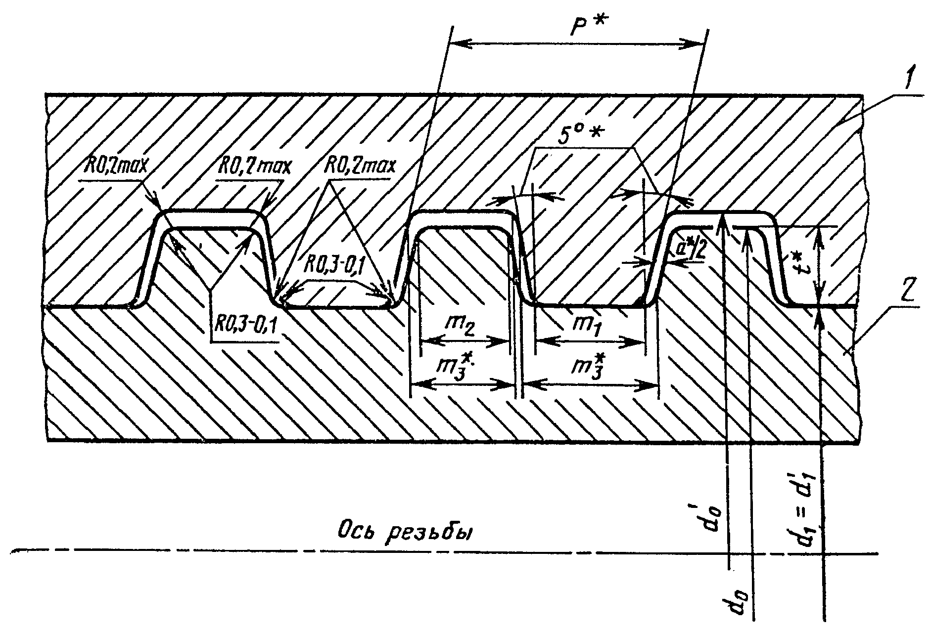 2. Допускается отклонения по шагу резьбы компенсировать соответствующим уменьшением ширины витка (увеличением ширины впадины) в пределах допуска.