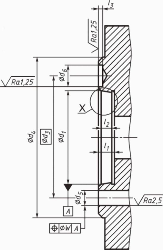 <*> Тип и исполнение должны быть маркированы. <**> Переходные размеры, позволяющие осуществлять взаимозаменяемость между дюймовыми и метрическими фланцами. <***> Размер l1 исполнения 1 может быть использован вместо размера исполнения 2 только при условии, что планшайба обладает достаточной жесткостью, чтобы не погнуться, когда болты затянуты по внутренней делительной окружности. |