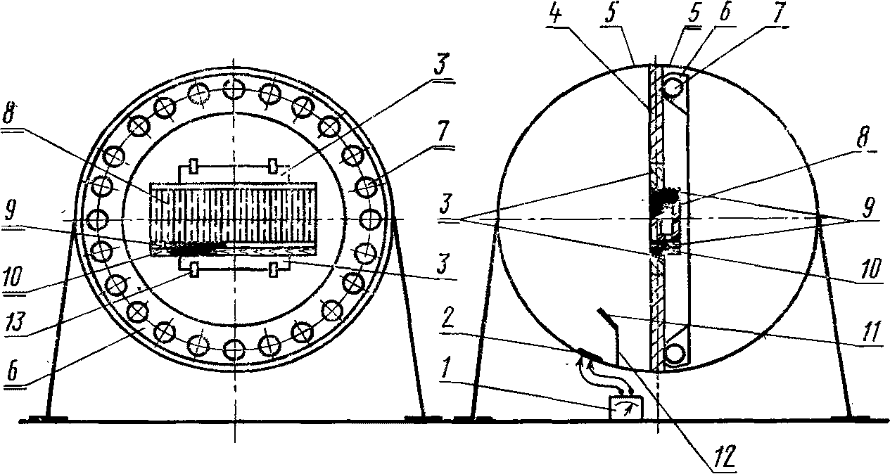 Шаровой диффузометр диаметром 2 м с диафрагмой толщиной не более 8 мм. Схема диффузометра указана на