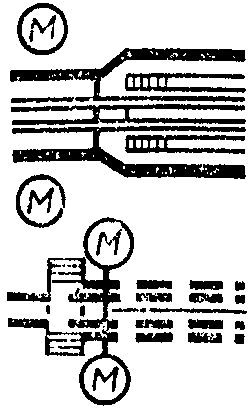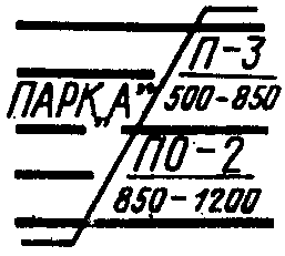 19. Группировка основных путей парка (слева от знака группировки указывается наименование парка, справа в числителе - обозначение и число путей, в знаменателе - наименьшие и наибольшие полезные длины путей) | ![]() | ![]() | ![]() |