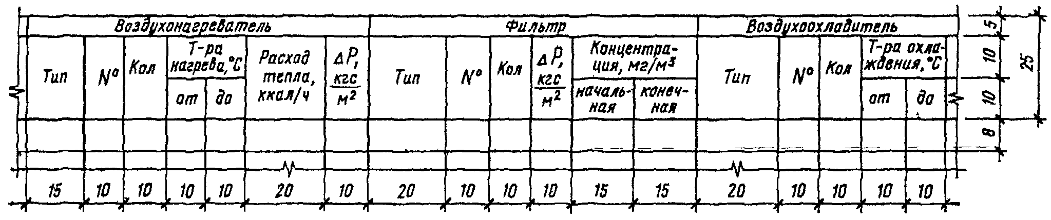 При отсутствии в системах отдельных видов оборудования соответствующие графы из таблицы исключают.