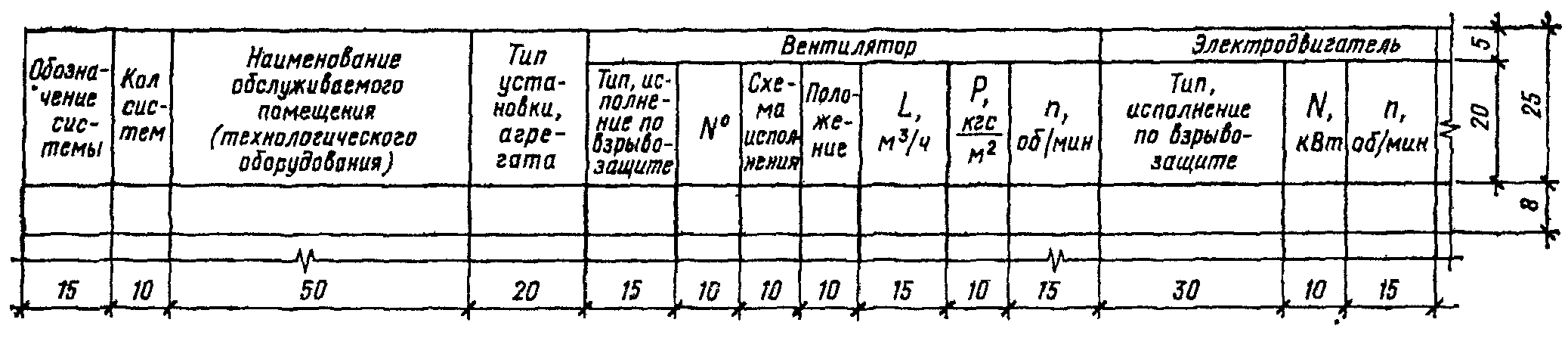На чертеже планов систем помещают таблицу местных отсосов от технологического оборудования по форме 3. Допускается таблицу местных отсосов приводить на отдельных листах.