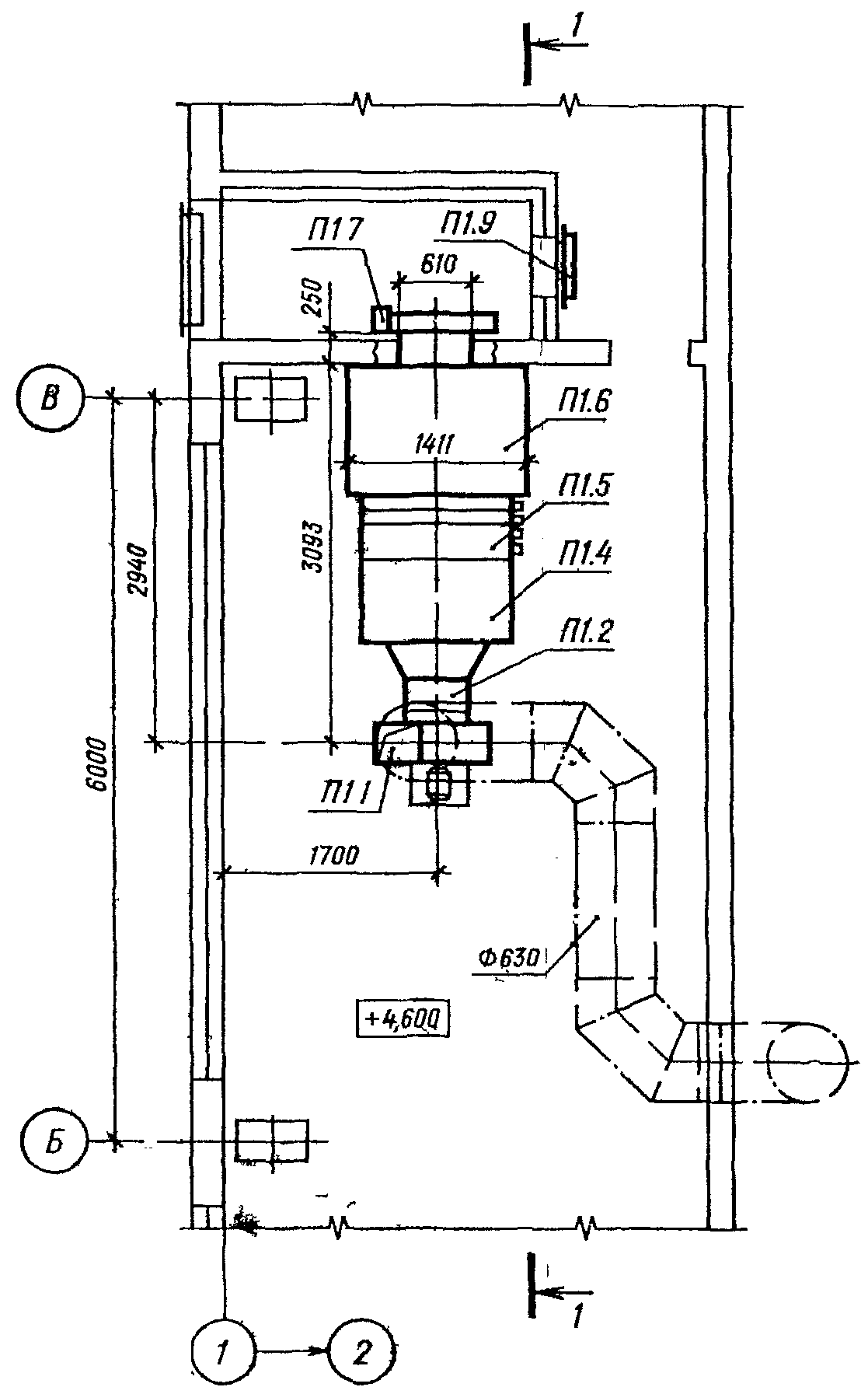 п. 1.4, и порядкового номера элемента в пределах установки, например: "П1.1", "П1.2", "В5.1", "В5.2".