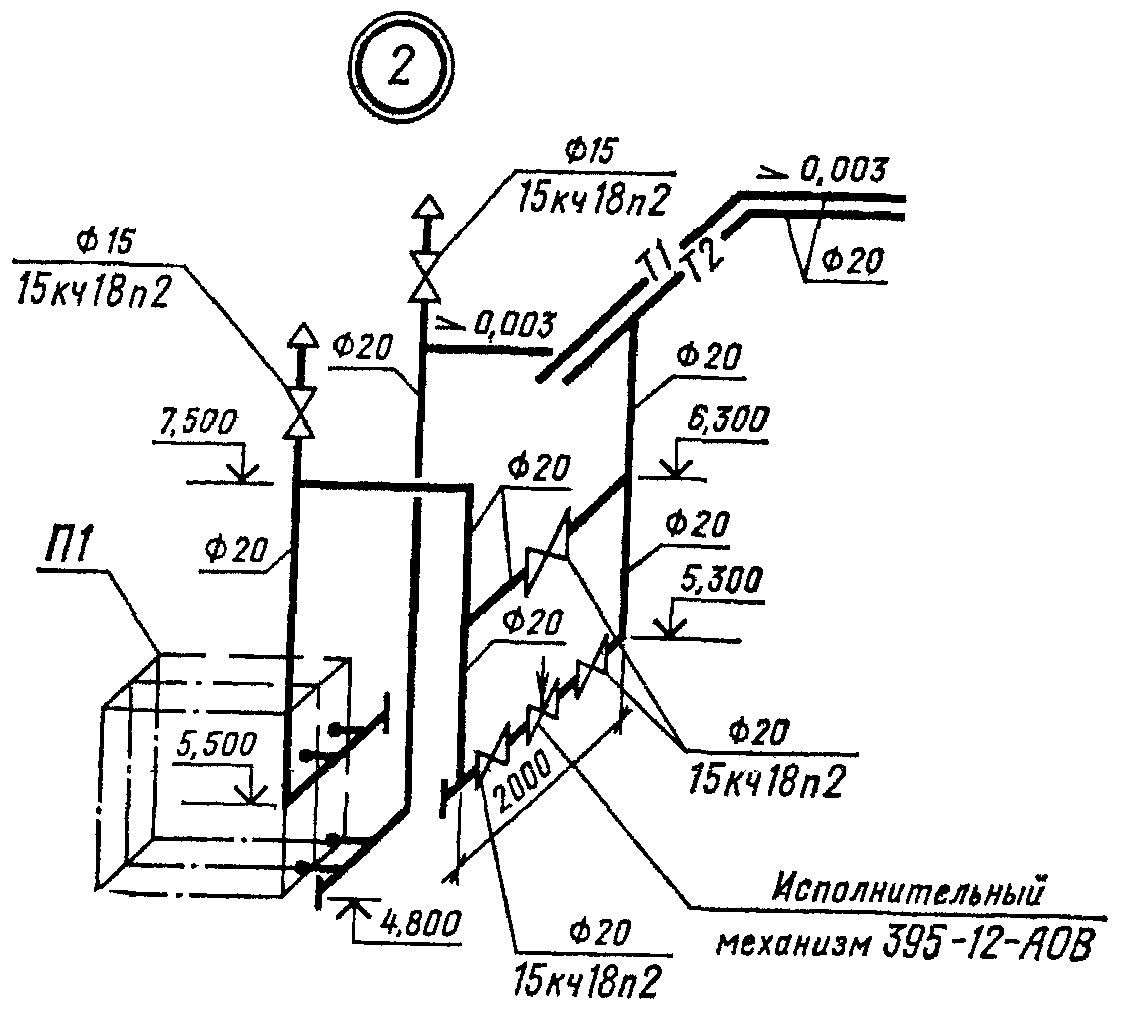 Примеры оформления схем систем отопления и теплоснабжения установок показаны на черт. 10 и 11.