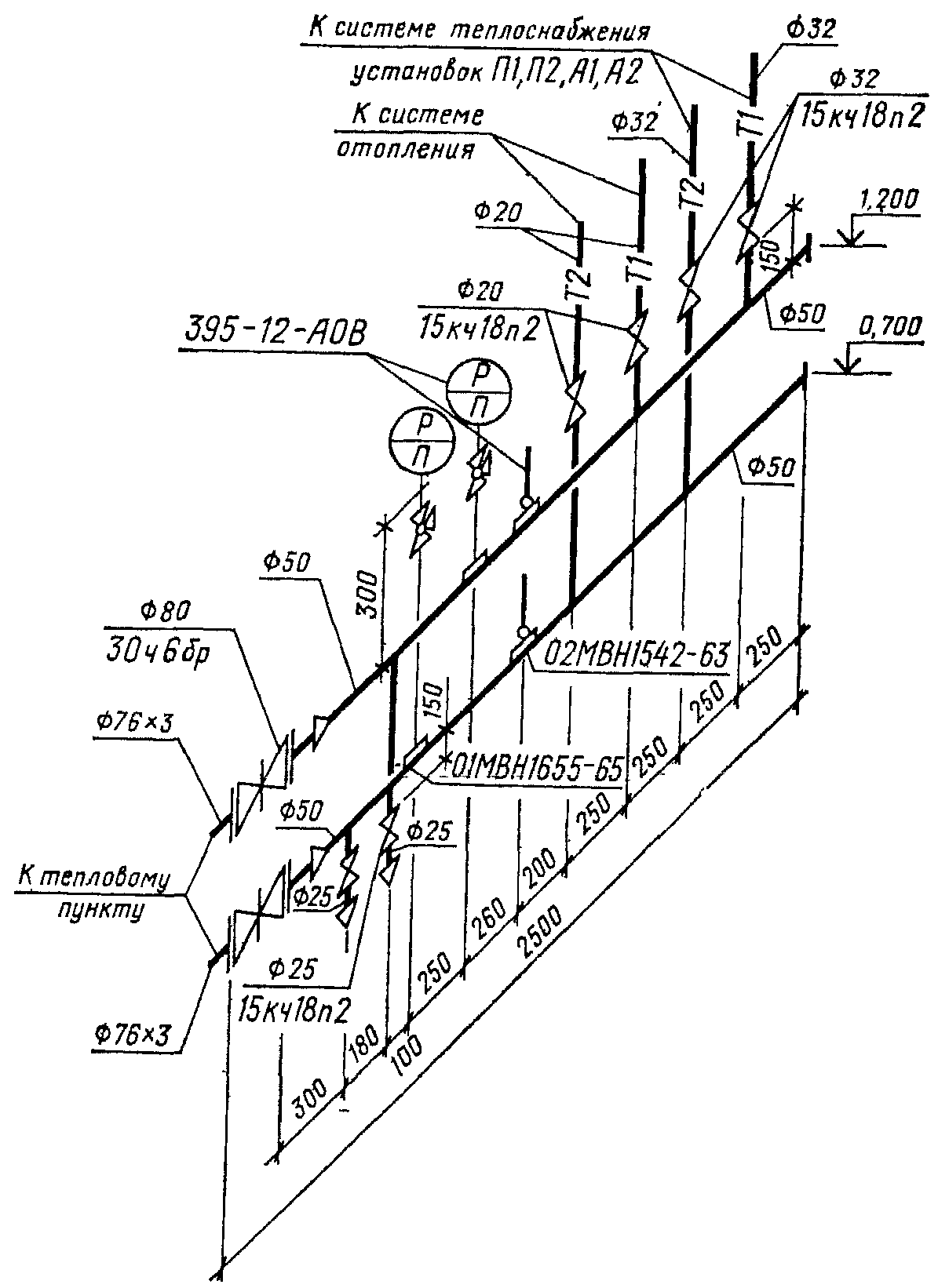 трубопроводы и их диаметры;