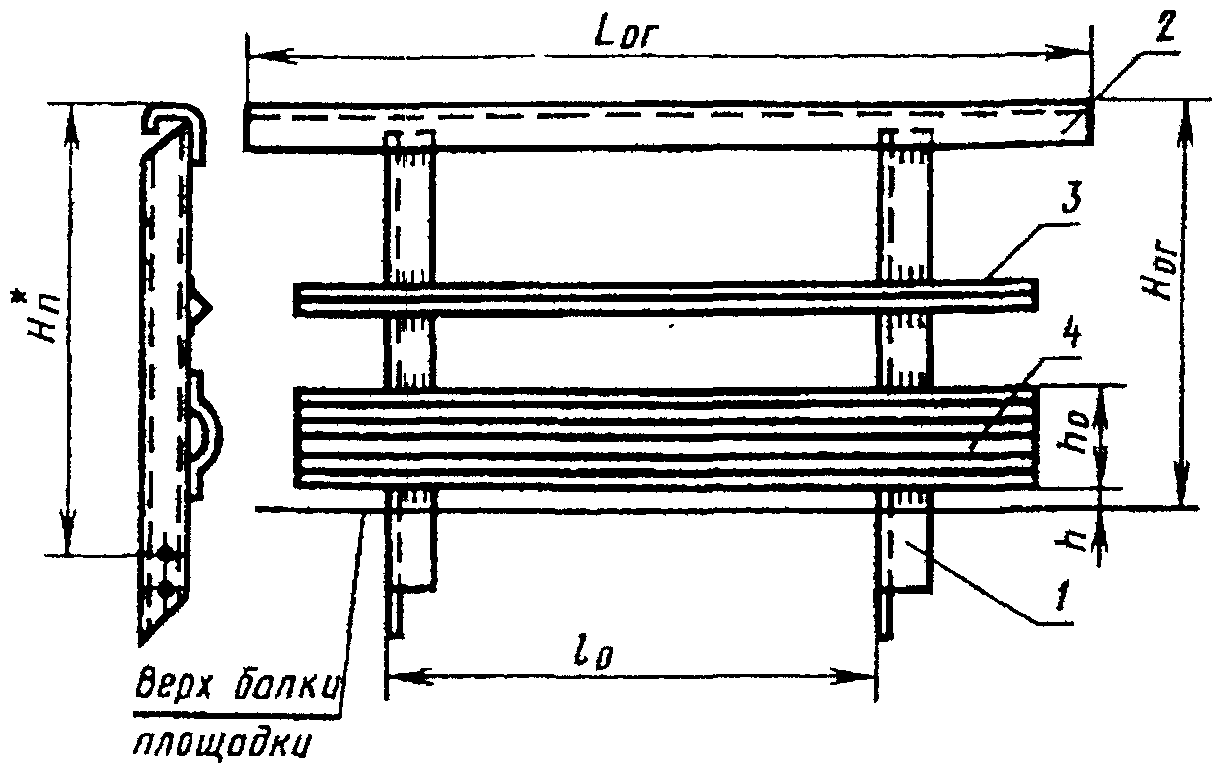 1 - стойка; 2 - поручень, 3 - средний ограждающий элемент;