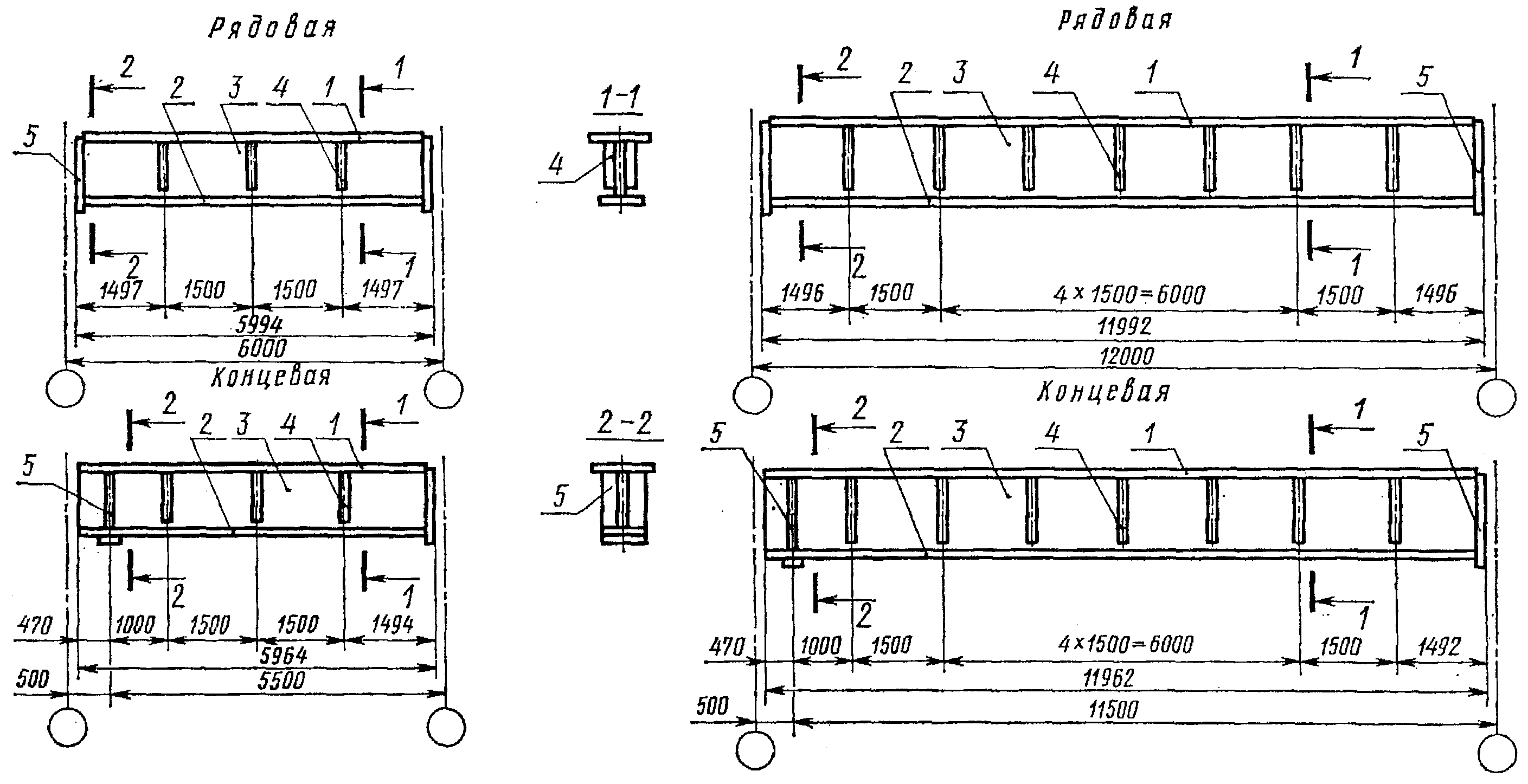 1.1. Балки должны изготовляться пролетами 6 м (5,5 м) или 12 м (11,5 м).