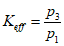 Быстрота действия qV достигает своего максимума qV0, если эффективная степень сжатия Keff достигает единицы. С другой стороны, при максимальной Keff = K0 быстрота действия по определению будет равна нулю. Эффективная степень сжатия Keff = p3/p1 может быть записана как отношение быстроты действия форвакуумного насоса и турбомолекулярного вакуумного насоса по формуле
