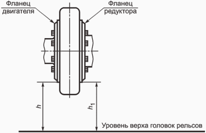 9.4 Для недопущения разрыва РКО в эксплуатации при техническом обслуживании моторвагонного подвижного состава рекомендуется в соответствии с конструкторской и эксплуатационной документацией на муфту проверять ее положение под тарой вагона состава путем измерения взаимного расположения фланца муфты со стороны тягового электрического привода