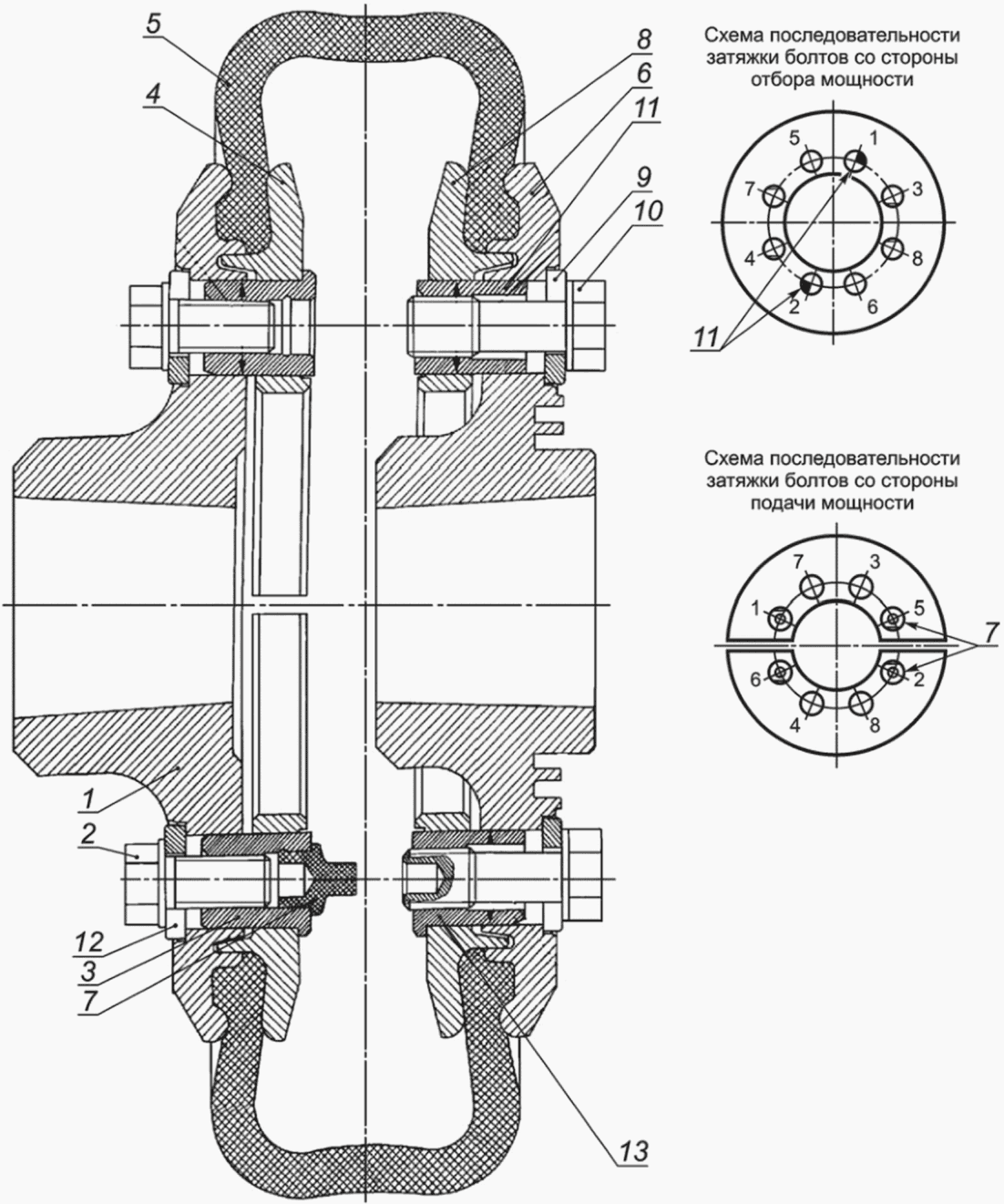 рисунке А.1, показан пример последовательности затяжки болтов крепления РКО.