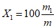 Массовую долю ломаных зерен и обломков зерна X1, %, вычисляют по формуле