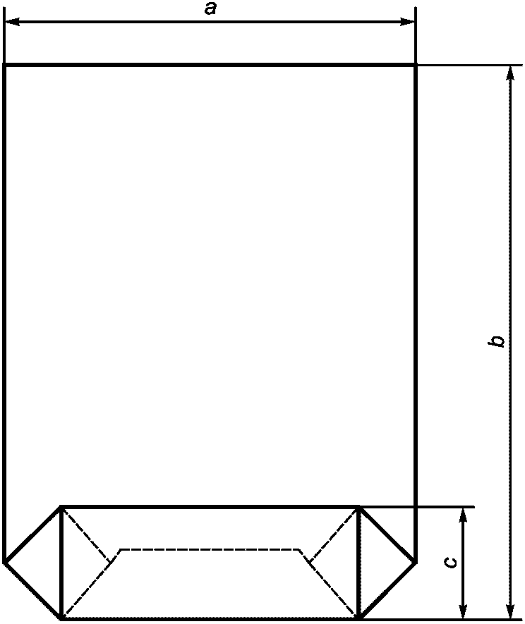 a - ширина мешка; b - длина мешка; c - ширина дна/ширина