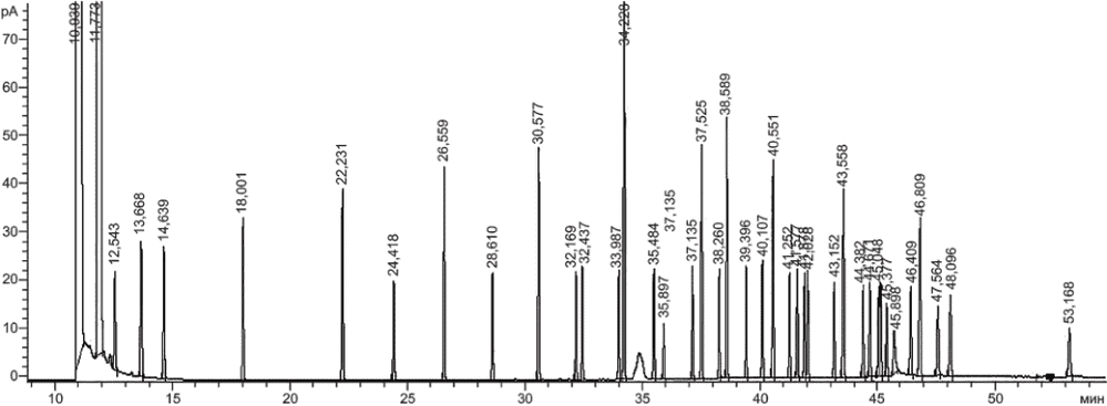 ХРОМАТОГРАММА СТАНДАРТНОГО РАСТВОРА МЕТИЛОВЫХ ЭФИРОВ
