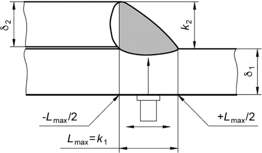 Lд соответствует отражателю, расположенному вблизи дальнего конца выпуклости сварного шва или за ней.