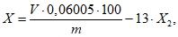 где V - объем раствора тиосульфата натрия концентрацией точно 0,1 моль/дм3, израсходованный на титрование в контрольном опыте, см3;