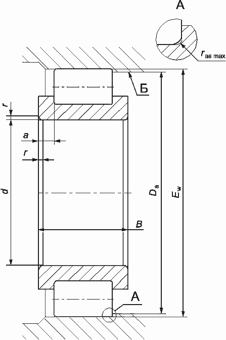 Основное условное обозначение подшипника | d | B | Ew | Da | a | rs min | ras max | ||