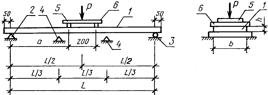 Для испытаний каждую плиту устанавливают на две горизонтальные находящиеся на одном уровне параллельные опоры. Расстояние от оси опоры до торца плиты должно равняться 50 мм. Плита должна опираться на опоры всей шириной. На плиту устанавливают деревянную платформу, связанную двумя брусками, на расстоянии 200 мм между осями так, чтобы середина платформы находилась над серединой плиты (черт. 1). Платформу загружают со скоростью 1 Н/с (0,1 кгс/с) до излома плиты.