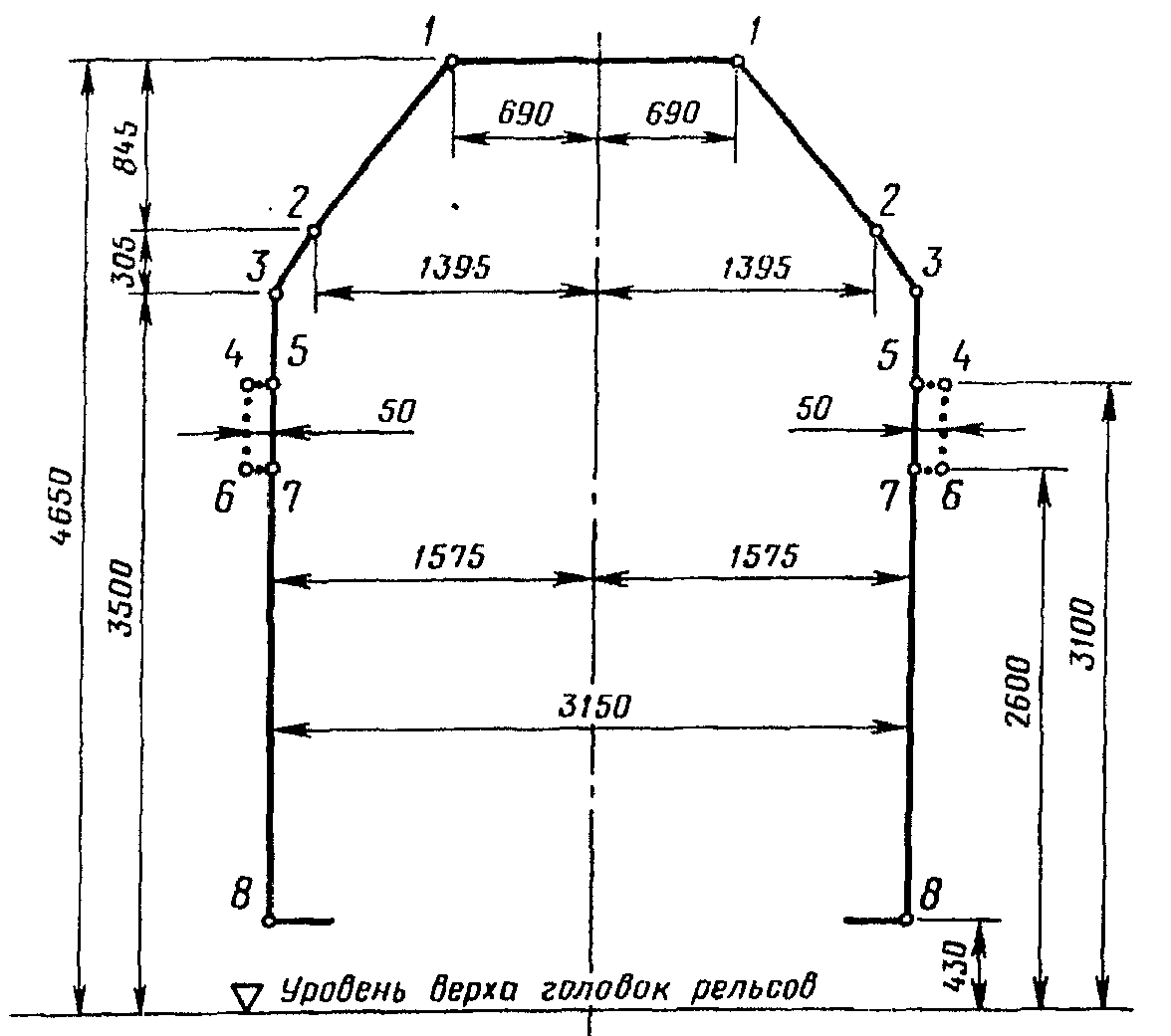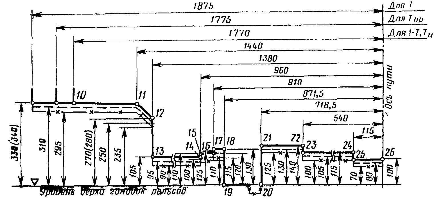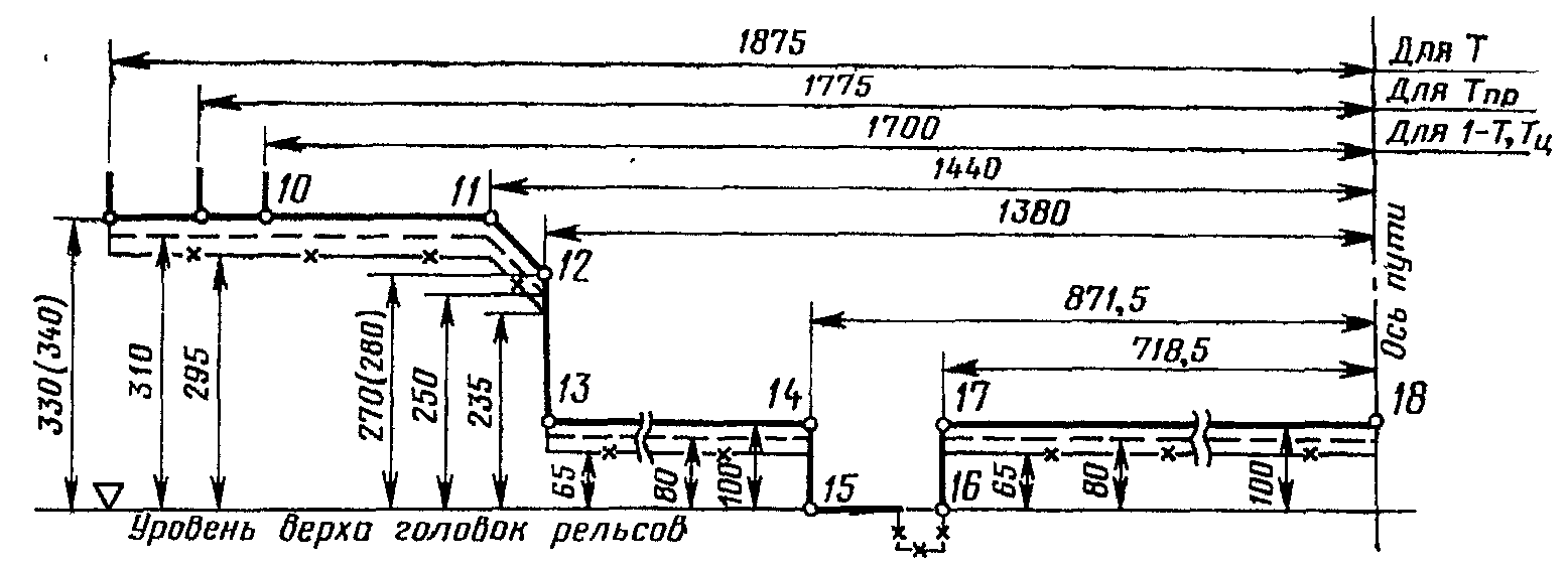 для габаритов Т, Тц, Тпр и 1-Т и верхней части габарита 1-ВМ