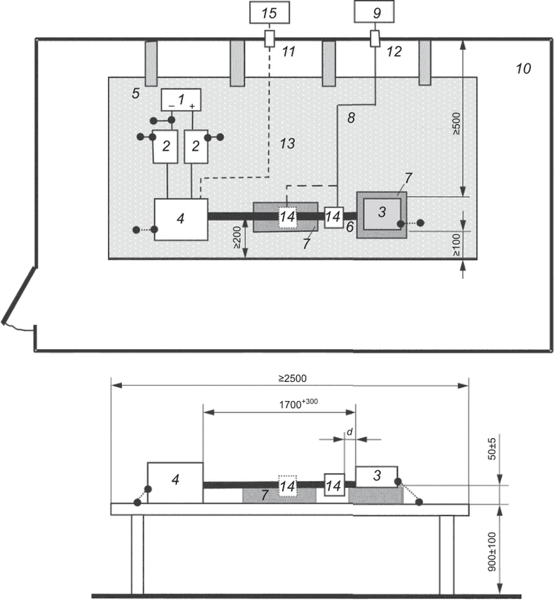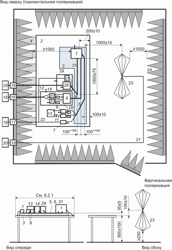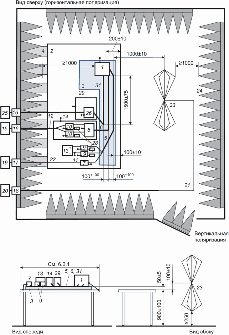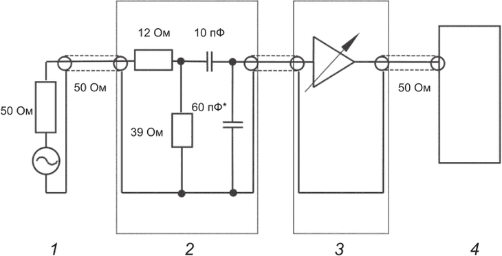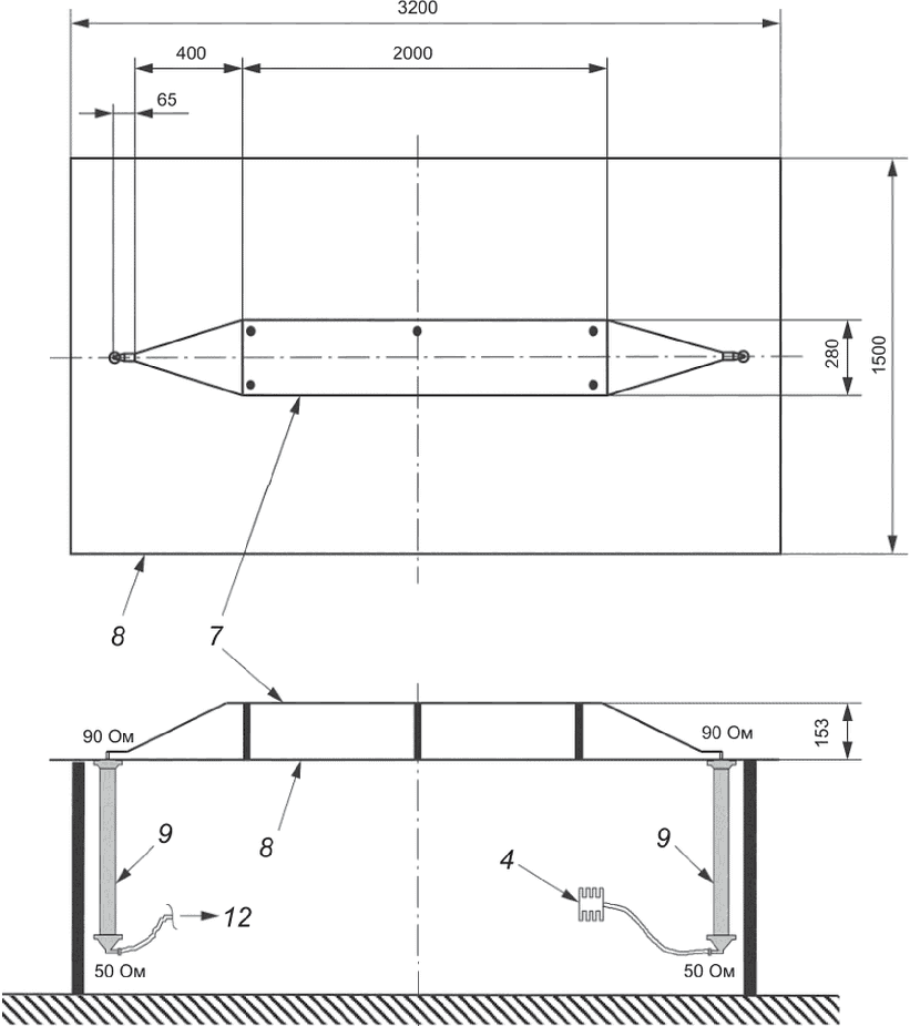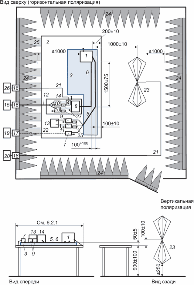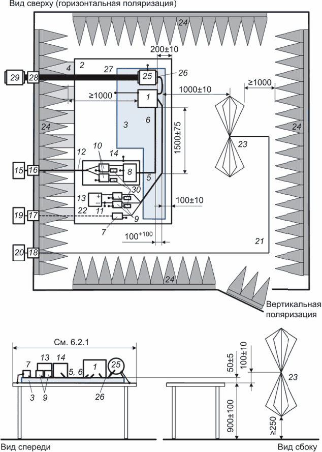 <1> Согласно CISPR 16-4-2. <2> Согласно CISPR 16-4-2 (используются значения, предлагаемые для разных частотных полос от 150 кГц до 6 ГГц). <3> Значение +/- 0,5 дБ применяют, если затухание кабеля(ей) измерительной системы, предусилителя, адаптера полного сопротивления и проходного разъема измеряются одновременно. Если затухание кабеля(ей) и проходного разъема измеряют отдельно, значение +/- 0,5 дБ необходимо удвоить. <4> Значение +/- 0,25 дБ применяют, если частотная интерполяция кабеля(ей) измерительной системы, предусилителя, адаптера полного сопротивления и проходного разъема измеряется одновременно. Если частотную интерполяцию кабеля(ей) и проходного разъема измеряют отдельно, значение +/- 0,25 дБ необходимо удвоить. - максимальный коэффициент отражения предусилителя равен 0,5; - максимальный коэффициент отражения входа приемника равен 0,2; - кабель не имеет потерь (|S21| = 1) и оптимально согласован (|S11| = |S22| = 0). - максимальный коэффициент отражения на входе предусилителя равен 0,32; - максимальный коэффициент отражения на выходе предусилителя равен 0,5; - максимальный коэффициент передачи от входа к выходу предусилителя |S21| = 32 дБ; - максимальный коэффициент передачи от выхода ко входу предусилителя |S12| = -40 дБ. - максимальный коэффициент отражения проходного разъема равен 0,2; - максимальный коэффициент отражения на входе предусилителя равен 0,32; - кабель не имеет потерь (|S21| = 1) и оптимально согласован (|S11| = |S22| = 0). - максимальный коэффициент отражения проходного разъема равен 0,2; - максимальный коэффициент отражения штыревой антенны равен 0,33; - кабель не имеет потерь (|S21| = 1) и оптимально согласован (|S11| = |S22| = 0). <9> Основано на том, что коэффициент калибровки антенны не зависит от высоты при калибровке в соответствии с SAE ARP 958.1. |