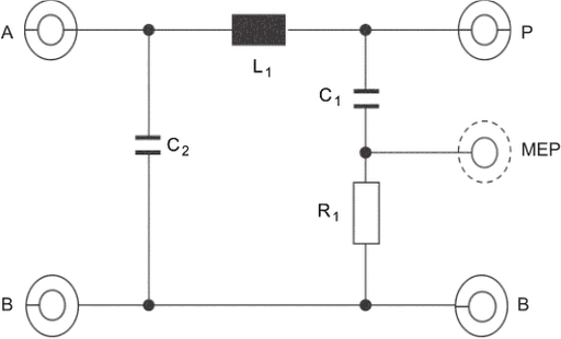 3.4 эквивалент сети питания; AMN (artificial mains network, AMN): Устройство, включаемое в цепь питания EUT, которое создает регламентированное полное сопротивление на радиочастотах при измерении напряжения помех и устраняет связь между испытуемым оборудованием и сетью питания.