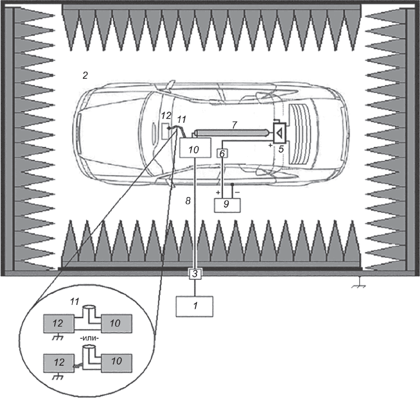- устанавливает метод испытания для измерения излучаемых помех от электрической системы транспортного средства;
