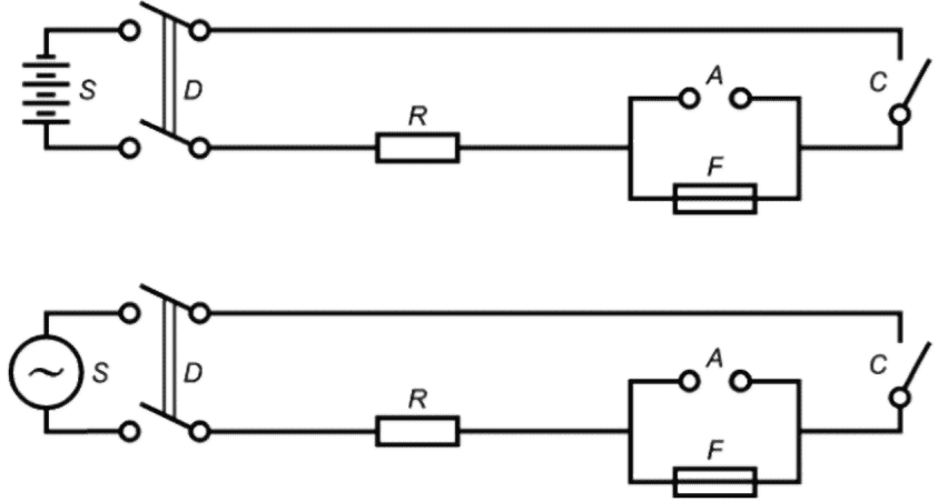 Для испытаний при меньших ожидаемых токах (5 IN, 10 IN, 50 IN, 250 IN) индуктивность в цепи - постоянная, а ток следует регулировать только за счет изменения сопротивления.