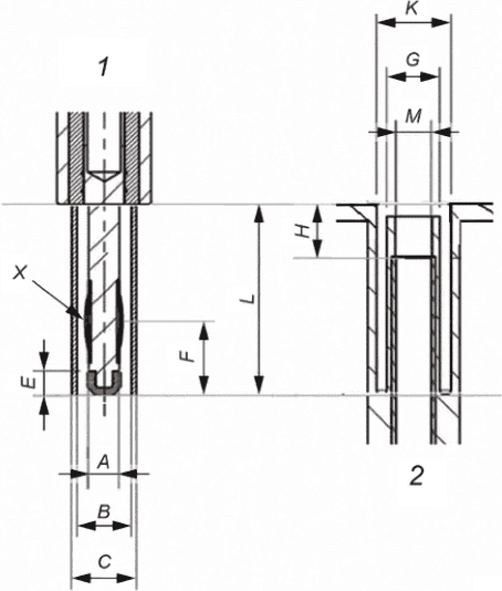 1 - штекерный ВЫВОД; 2 - гнездовой ВЫВОД; X - точка,