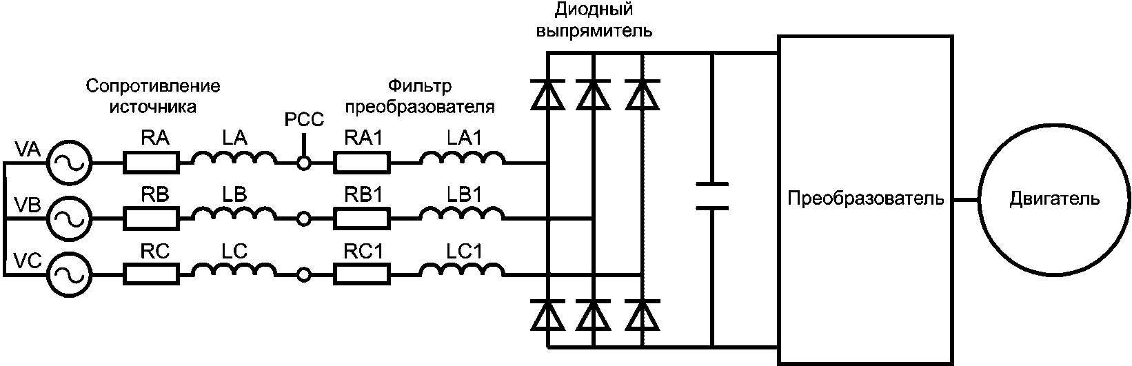 Двигатели и их электрические цепи должны быть надежно защищены с использованием релейных устройств, которые могут отключать преобразователь. Кроме того, для двигателей свыше 300 кВт рекомендуется защита от превышения тока и перегрузки с использованием датчиков превышения температуры обмотки.