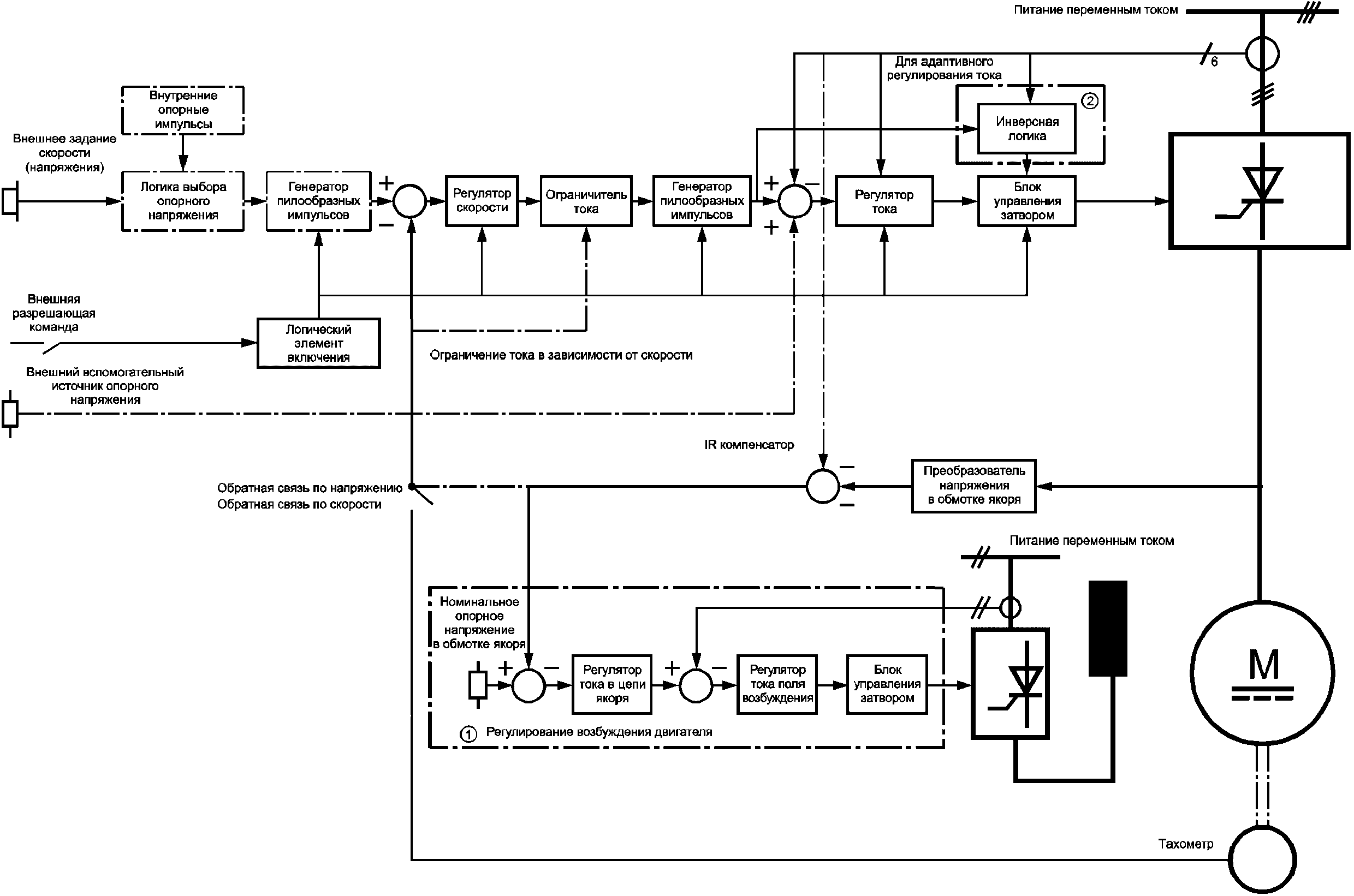 - контроль управляемых переменных (таких как скорость, напряжение, действительные значения тока или опорные сигналы);