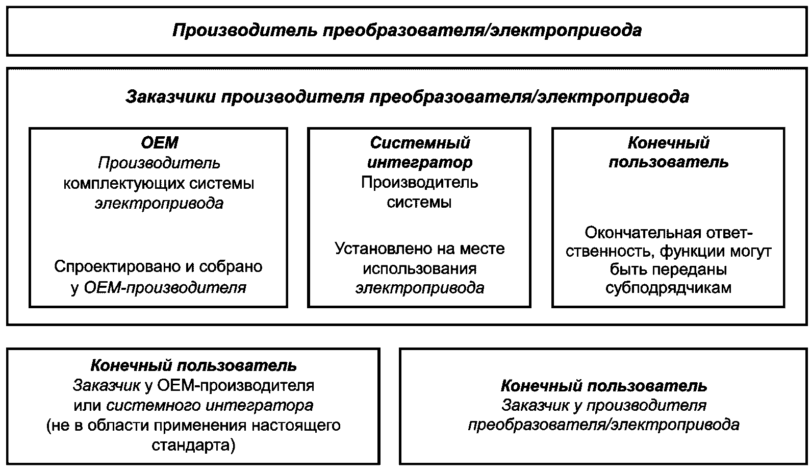 3) ссылки на соответствующие стандарты серии IEC 61800 в части ЭМС (IEC 61800-3), электробезопасности (IEC 61800-5-1), функциональной безопасности (IEC 61800-5-2), режимов нагружения (IEC TR 61800-6), коммуникационных профилей (серия стандартов IEC 61800-7) и напряжения "