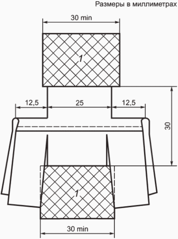 (4.2.1) так, чтобы зажимы находились на расстоянии приблизительно 30 мм друг от друга.