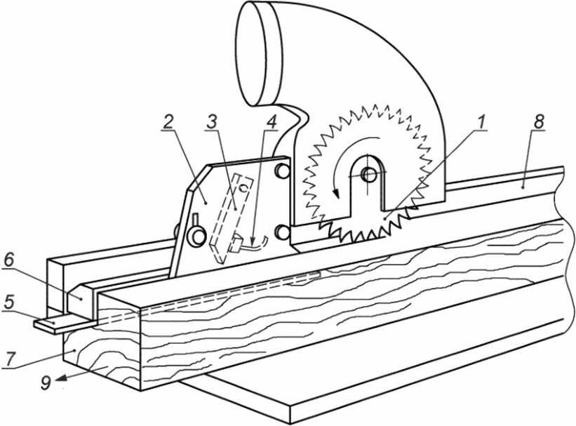 1 - дисковая пила для выборки штапика; 2 - отделитель