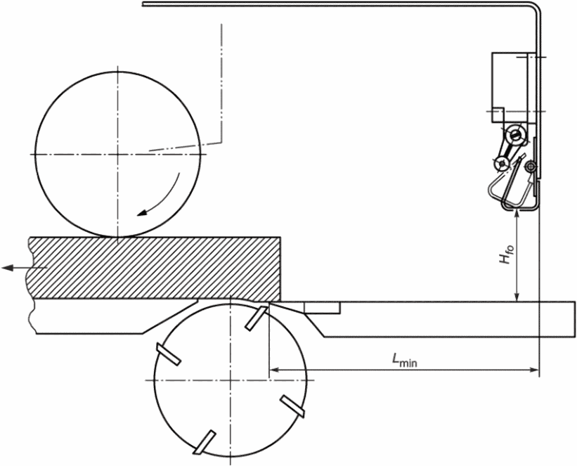 Примечание - Станки, в которых первый подающий ролик установлен после первого инструмента, и станки, в которых подающий ролик перед первым нижним шпинделем может быть поднят для регулировки, в настоящем стандарте также являются машинами со встроенной подачей.