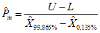 Значения Pmk в таблице относятся только к одному хвосту распределения. Чтобы оценить общее количество за границами поля допуска, необходимо определить доли для обоих,  и  , а затем их сложить. Примечание 1 - Обозначение E-a следует читать как x 10-a, например 2,6E-06 равно 2,6 x 10-6. Примечание 2 - Для отрицательных значений Pmk доля равна 1-p, где p - табличное значение. |