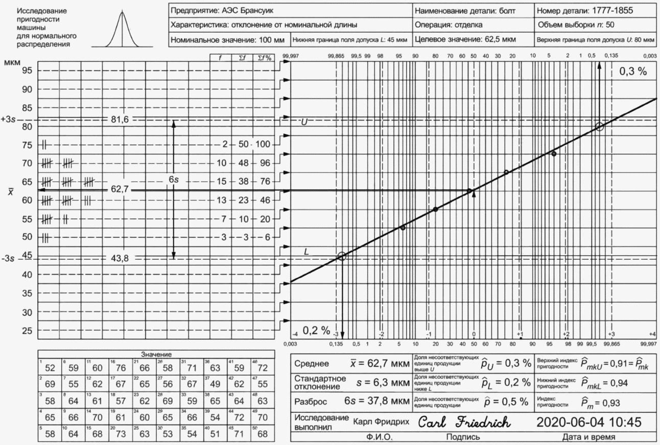 Если данные подчиняются нормальному распределению, то индекс пригодности машины