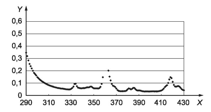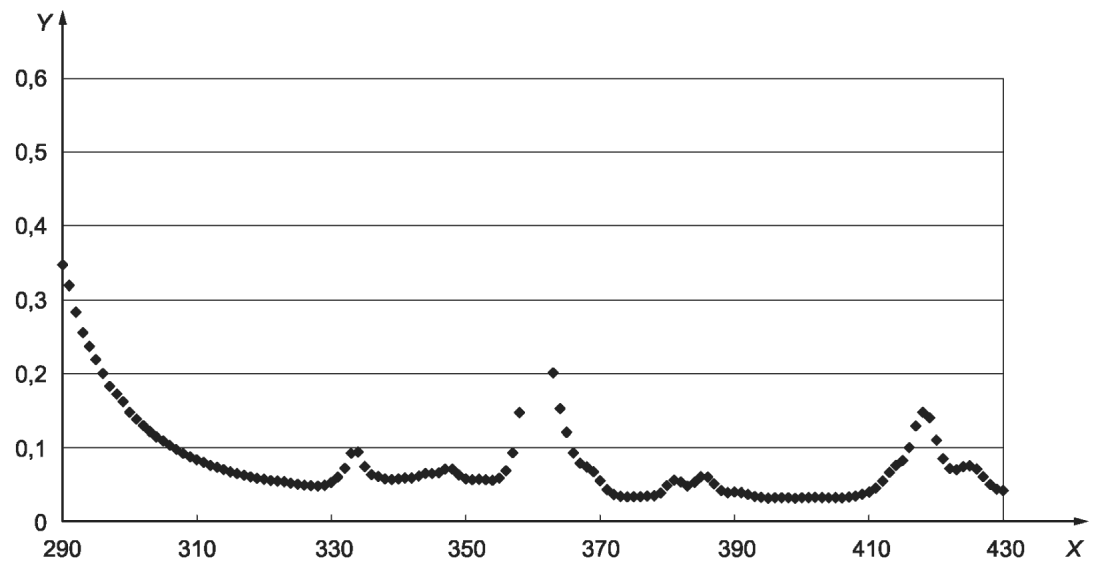 Диапазон длин волн UV спектрофотометра должен охватывать диапазон 290 нм - 400 нм. Шаг увеличения длины волны должен составлять 1 нм.